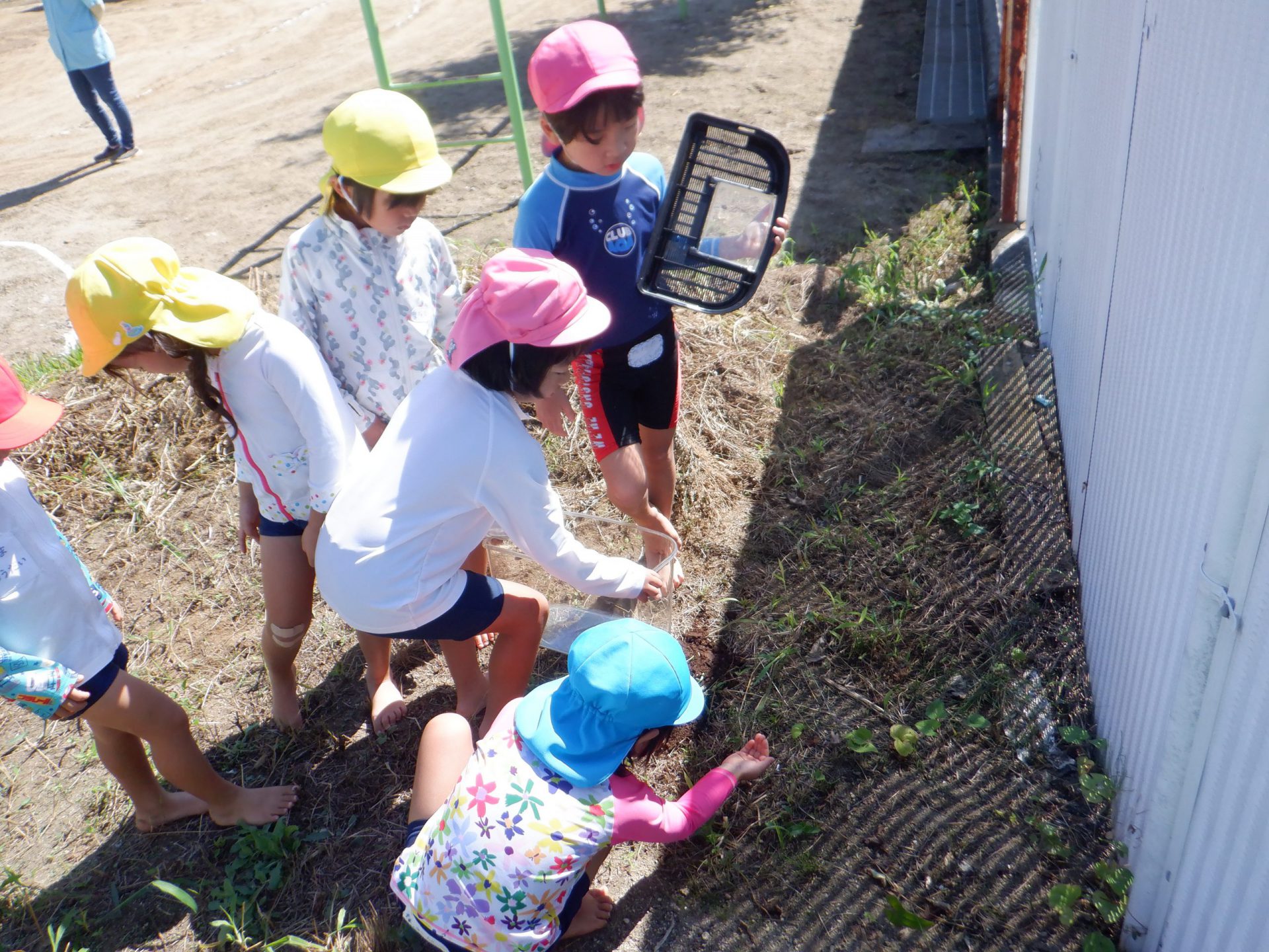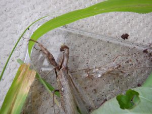 脱皮から数日間飼育しましたが、だんだんと元気がなくなっていき、餌にと捕ったバッタの方が元気なくらいになってしまった為、子ども達と話をし畑に逃がすことにしました。