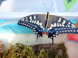 ・幼虫がさなぎになり、さなぎの皮を脱いで蝶になった時の感動は子どもだけでなく私たち保育士にとっても、毎回代えがたい時間となっている。