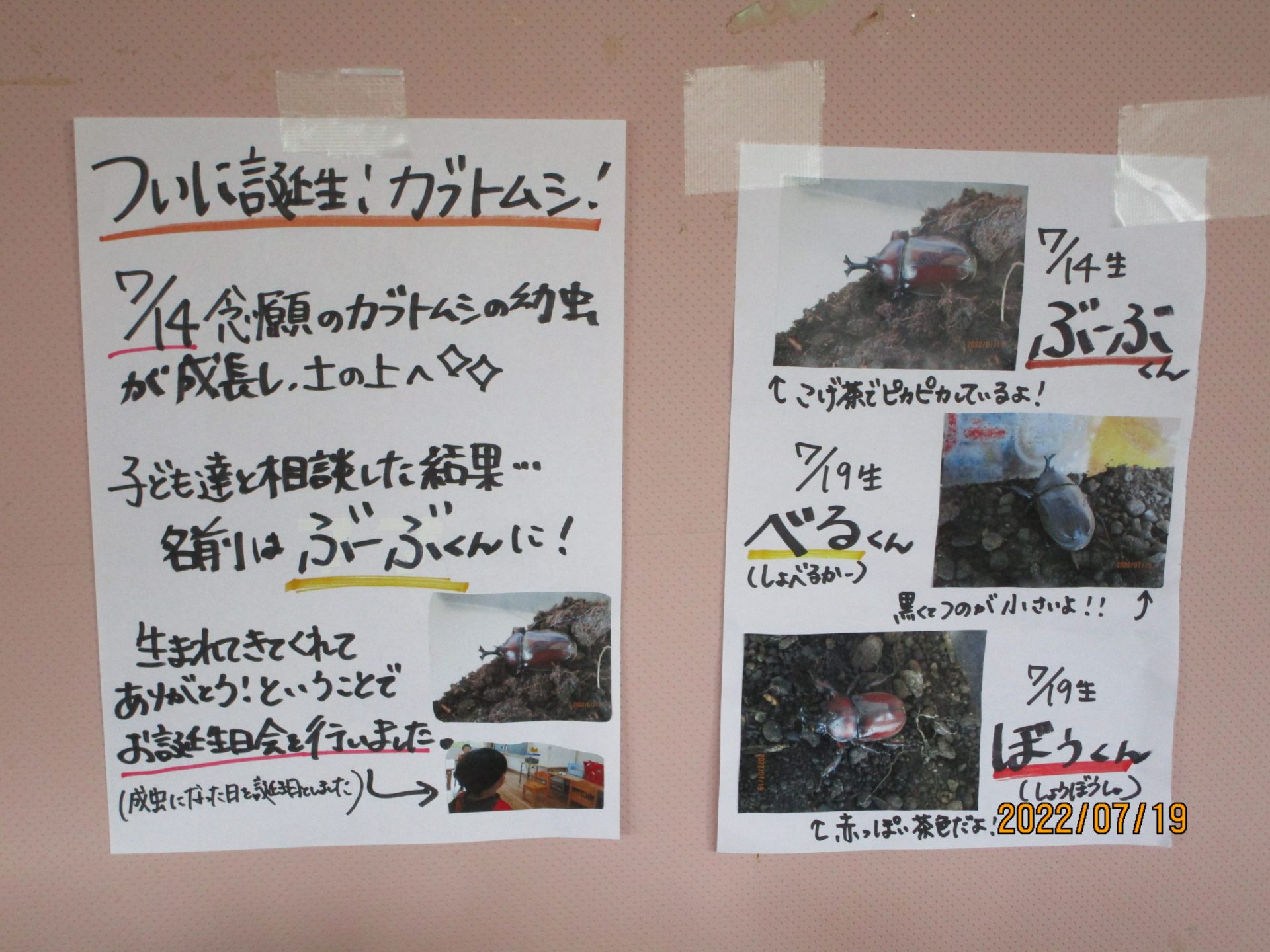 とお当番にやりがいを感じ、カブトムシとの生活を楽しむ子どもたちでした。