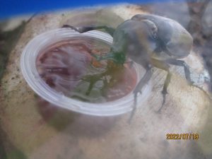 カブトムシは食欲旺盛でゼリーの交換をしたり、