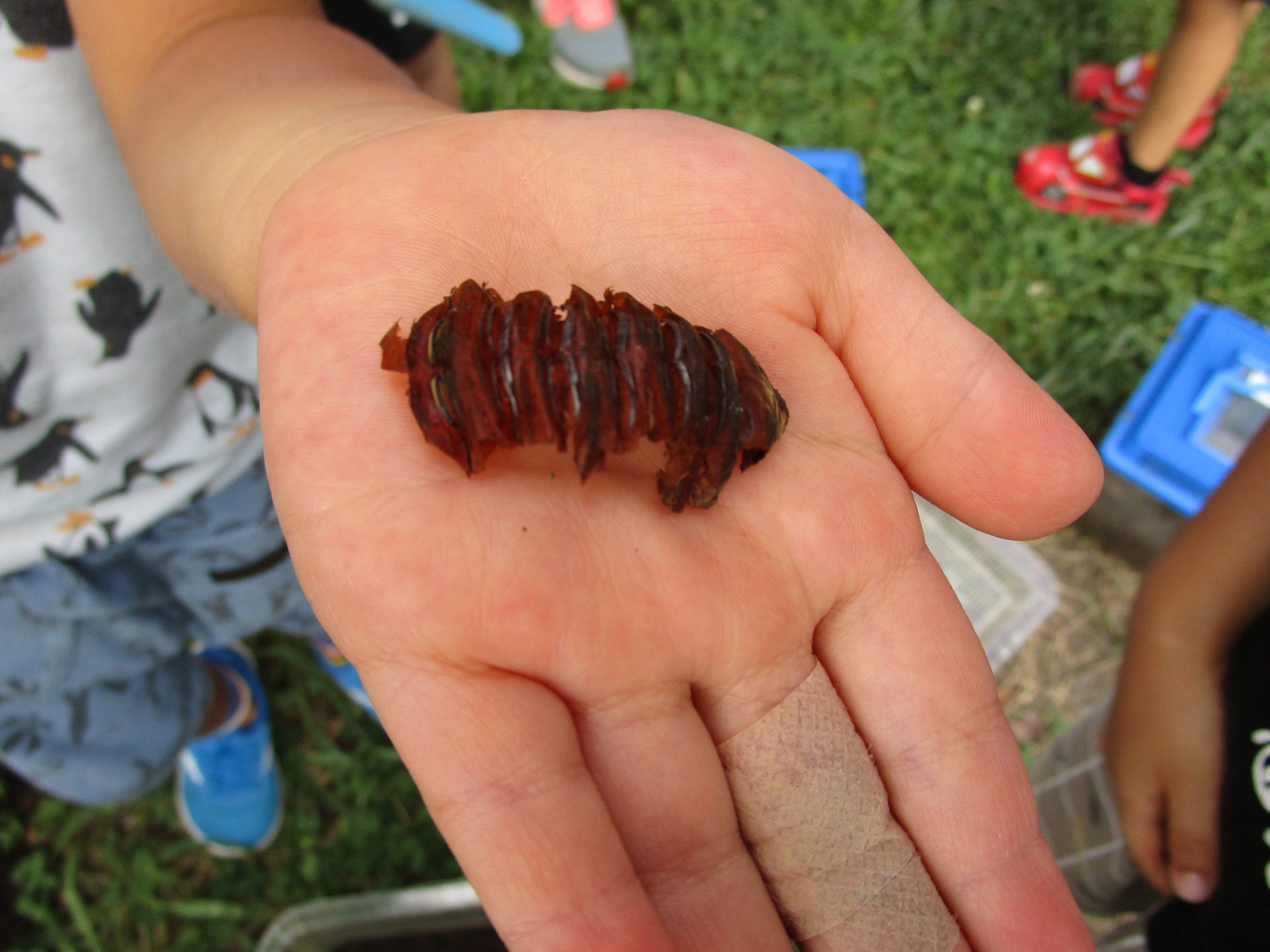「この中にいたのかな」「死んじゃった幼虫かな」