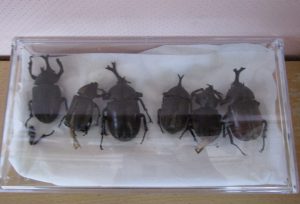 ↑死んでしまったカブトムシ。ケースに入れて観察しました。
