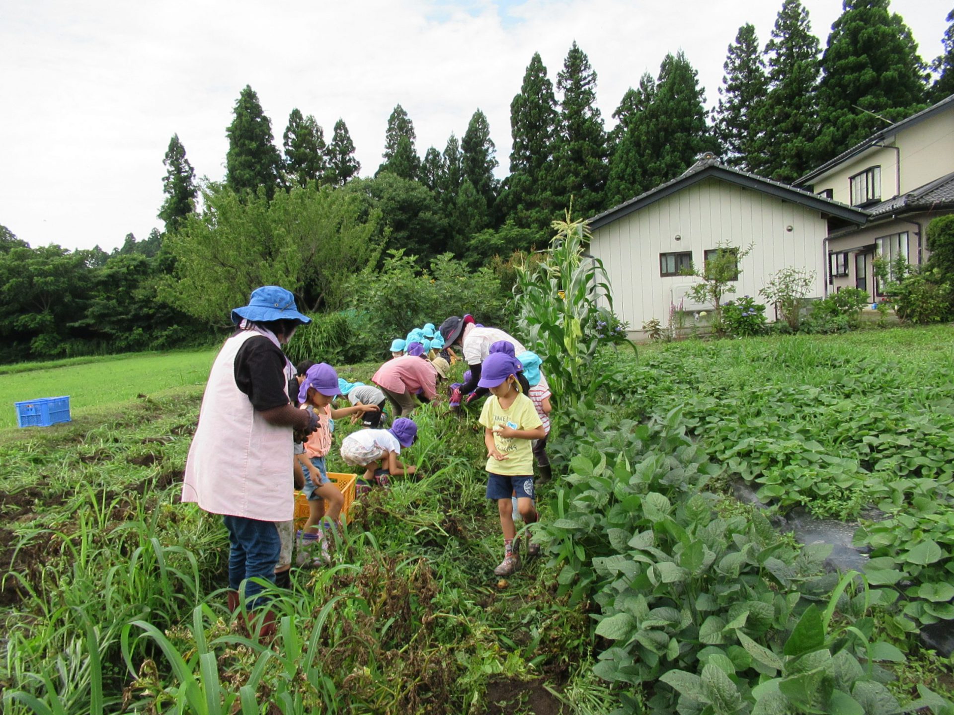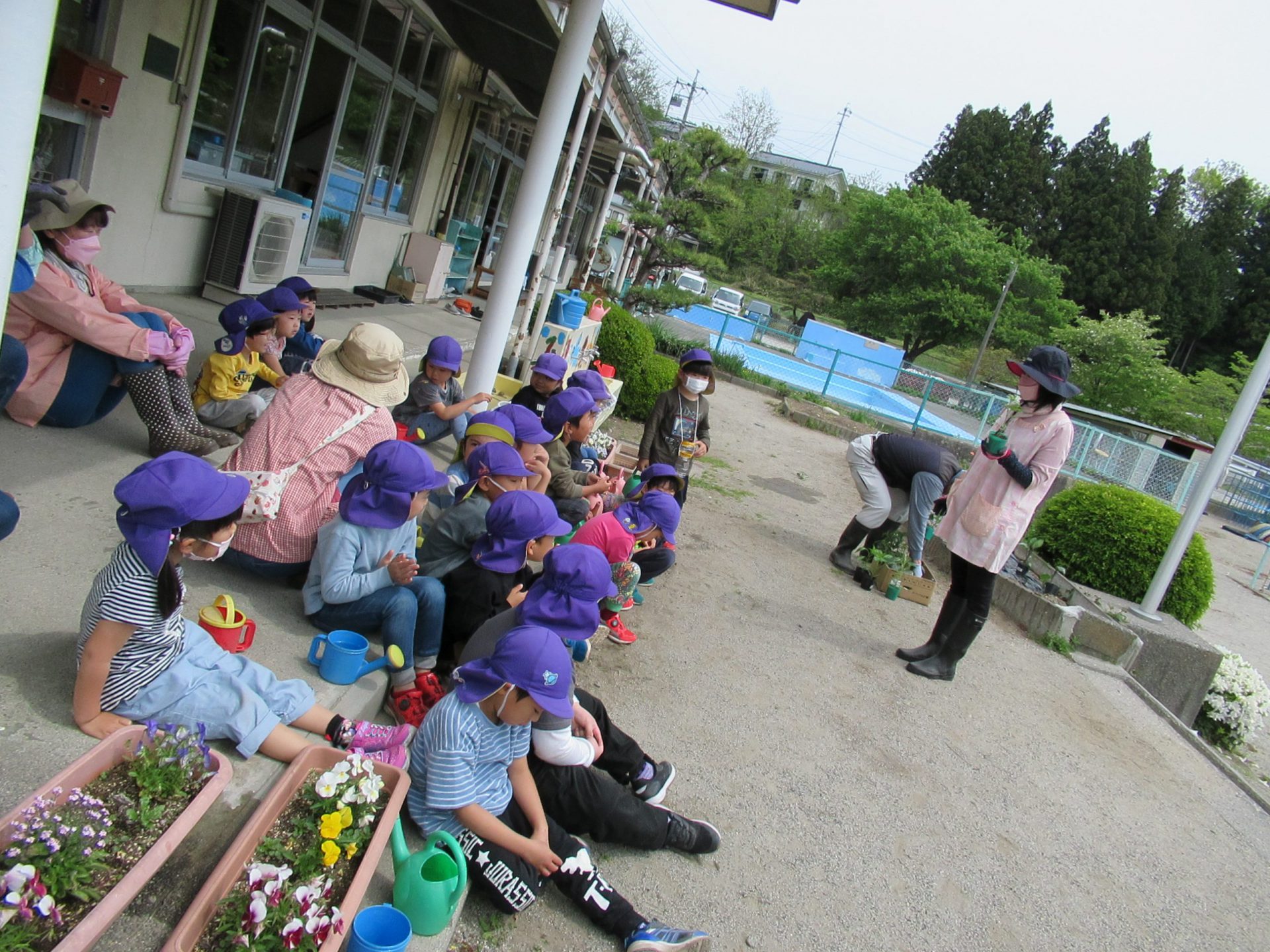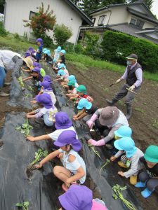 子どもたちは「おおきくなーれ!」「おおきくなーれ!」と言いながら種まきや苗植えをしていました。子どもたちの声や思いはきっと野菜に届いたことでしょう。元気な声が畑に響き渡っていました。