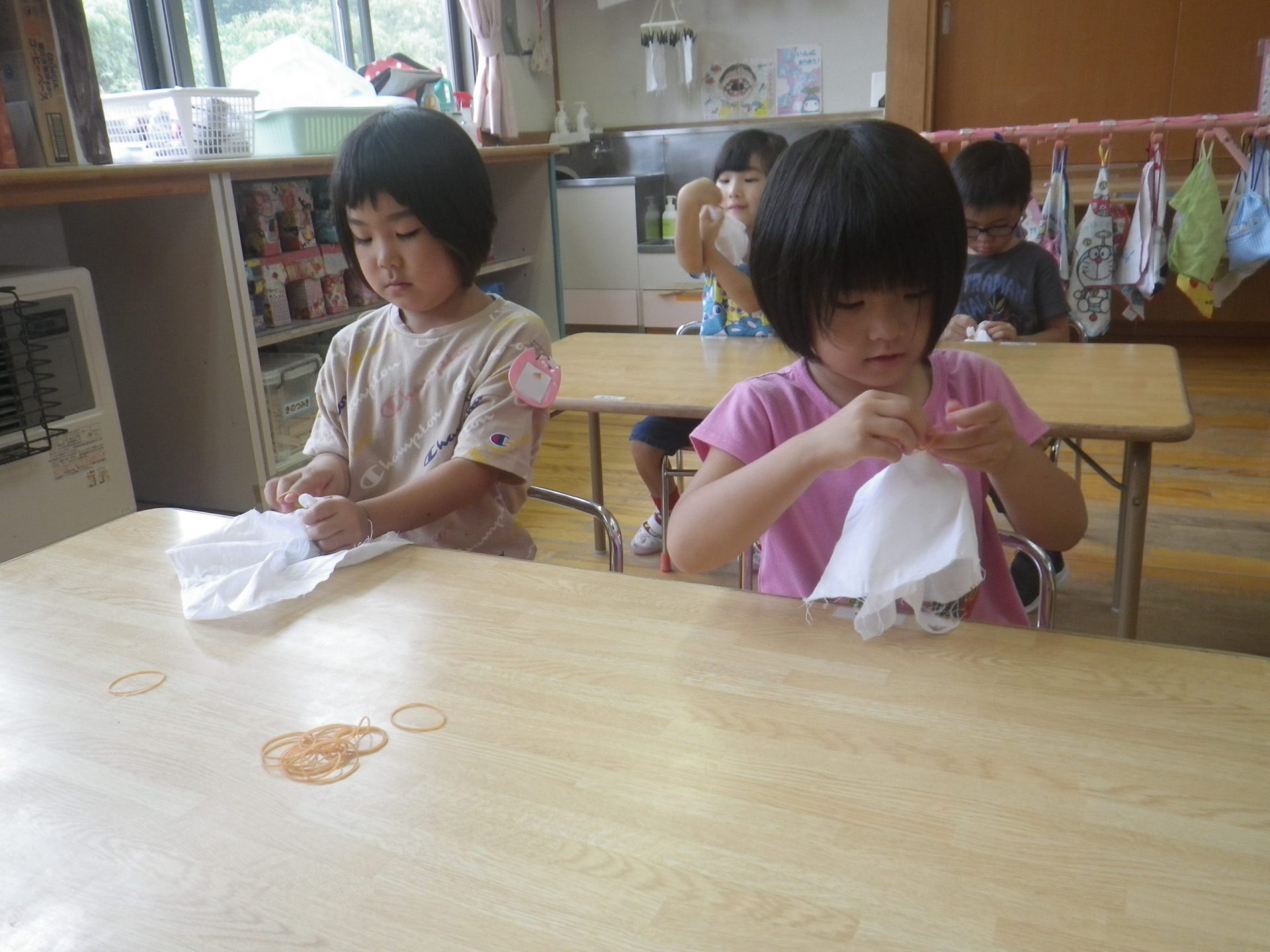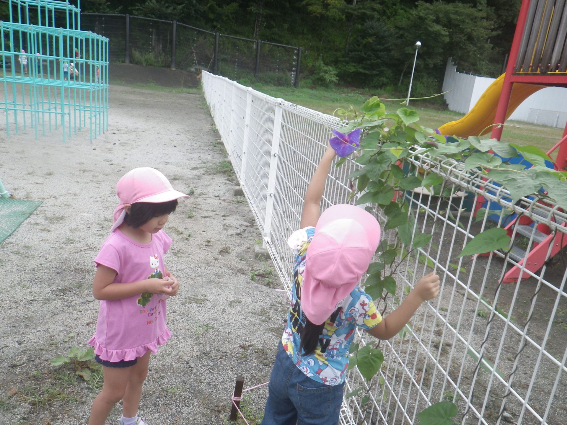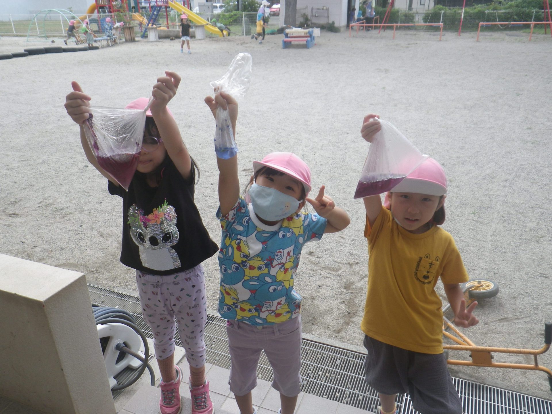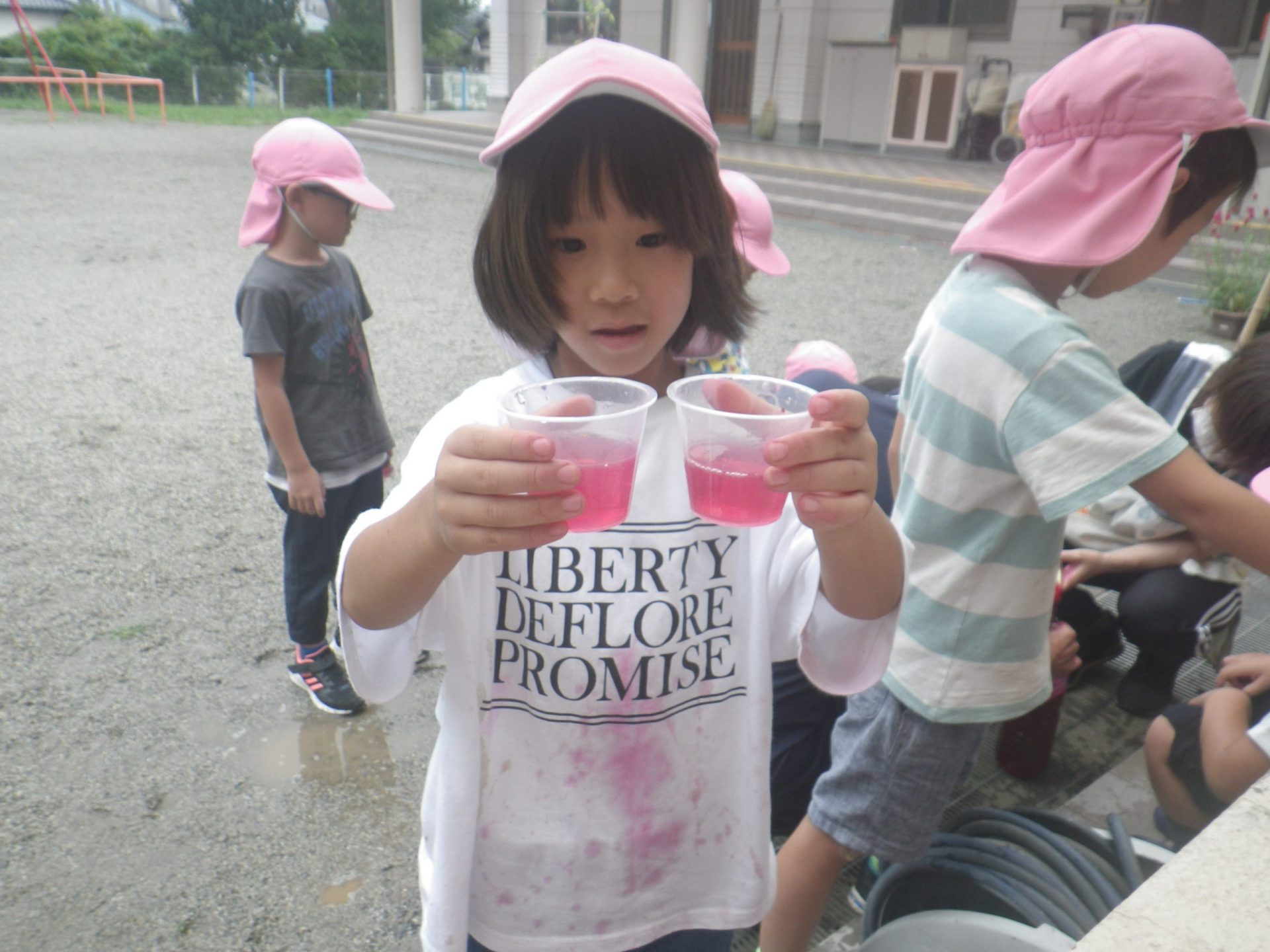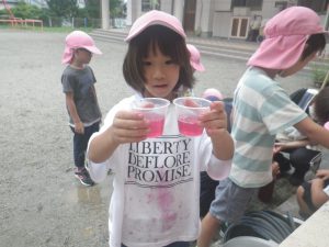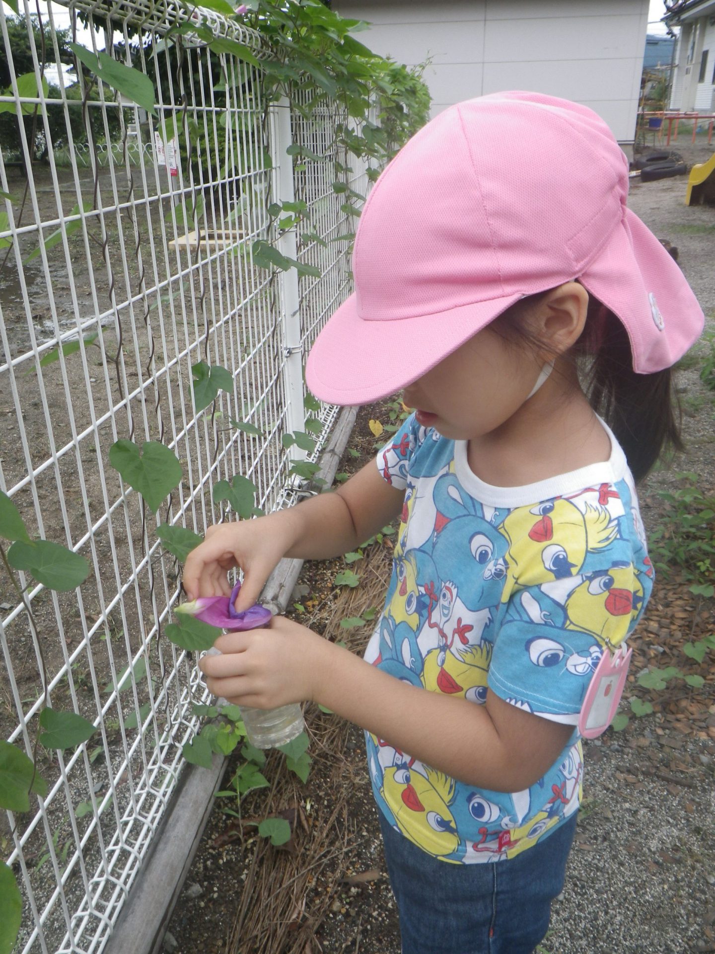 庭にはアサガオやオシロイバナが咲き、再び色水あそびが盛んになってきました。