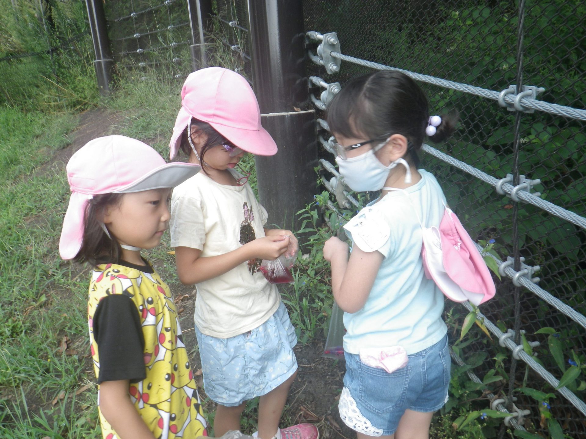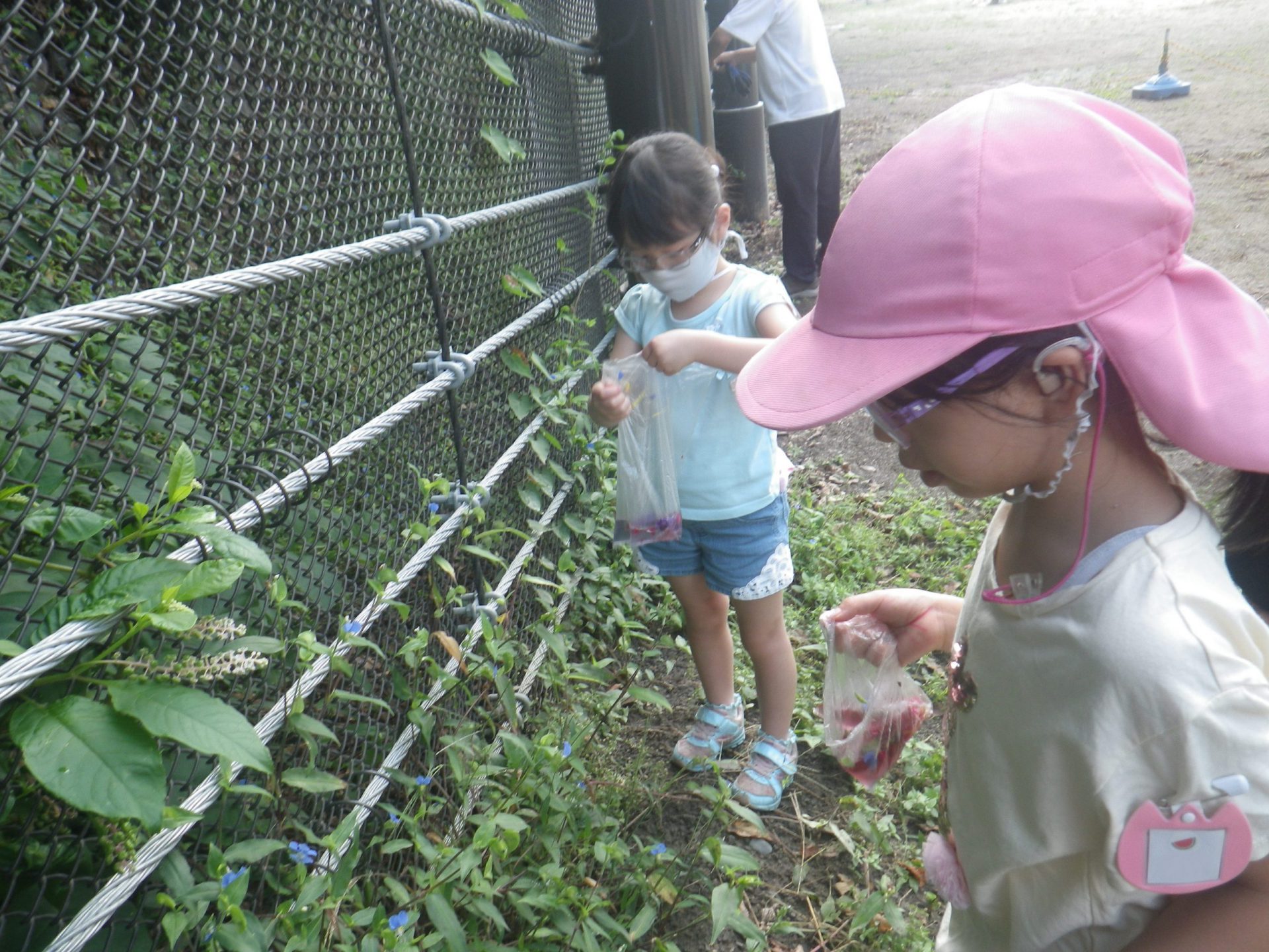どこにどんな自然物があるのか子ども達もよく知っています。欲しい色の植物を見つけ、色水作りを楽しんでいました。
