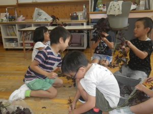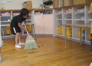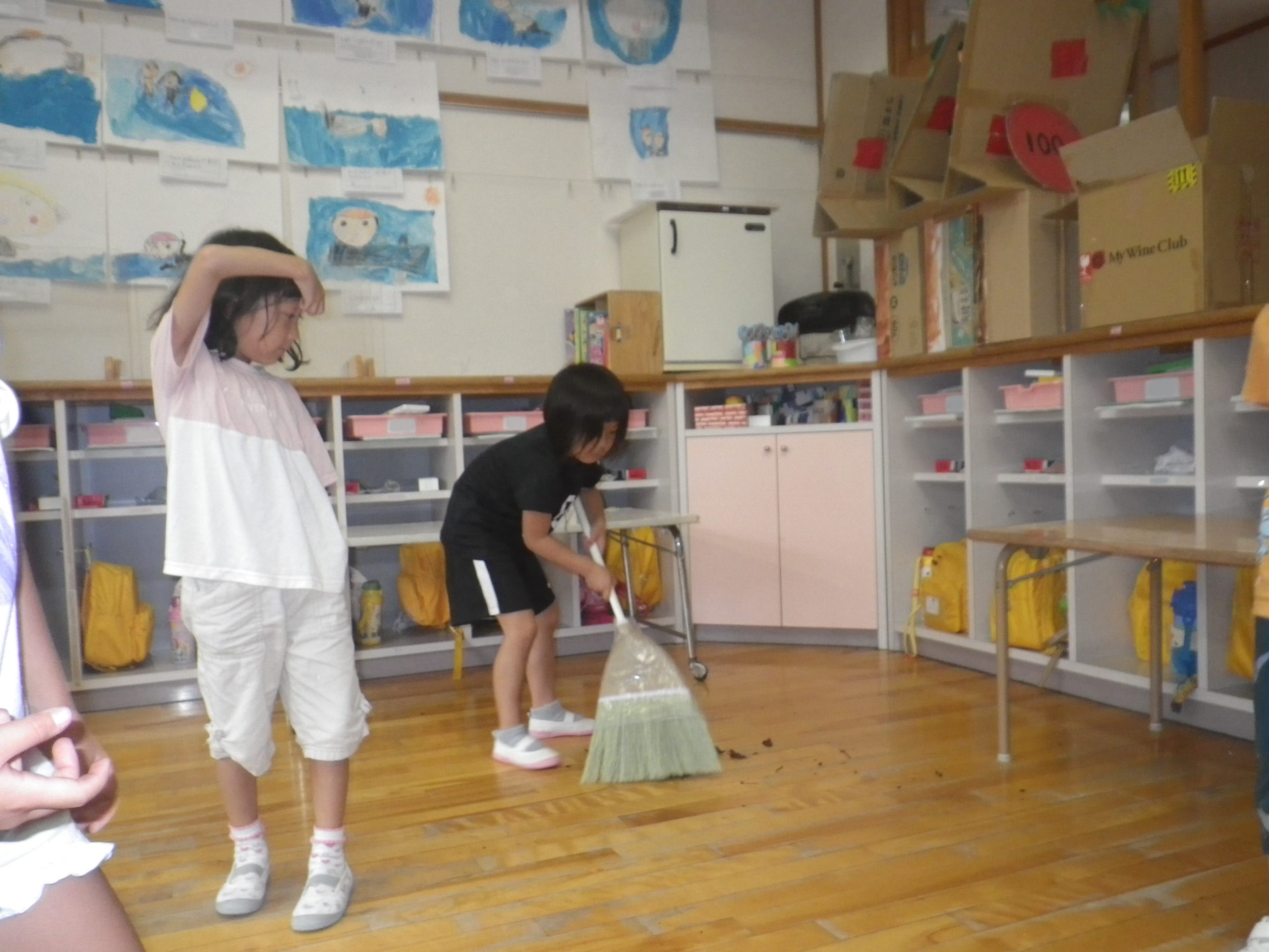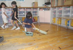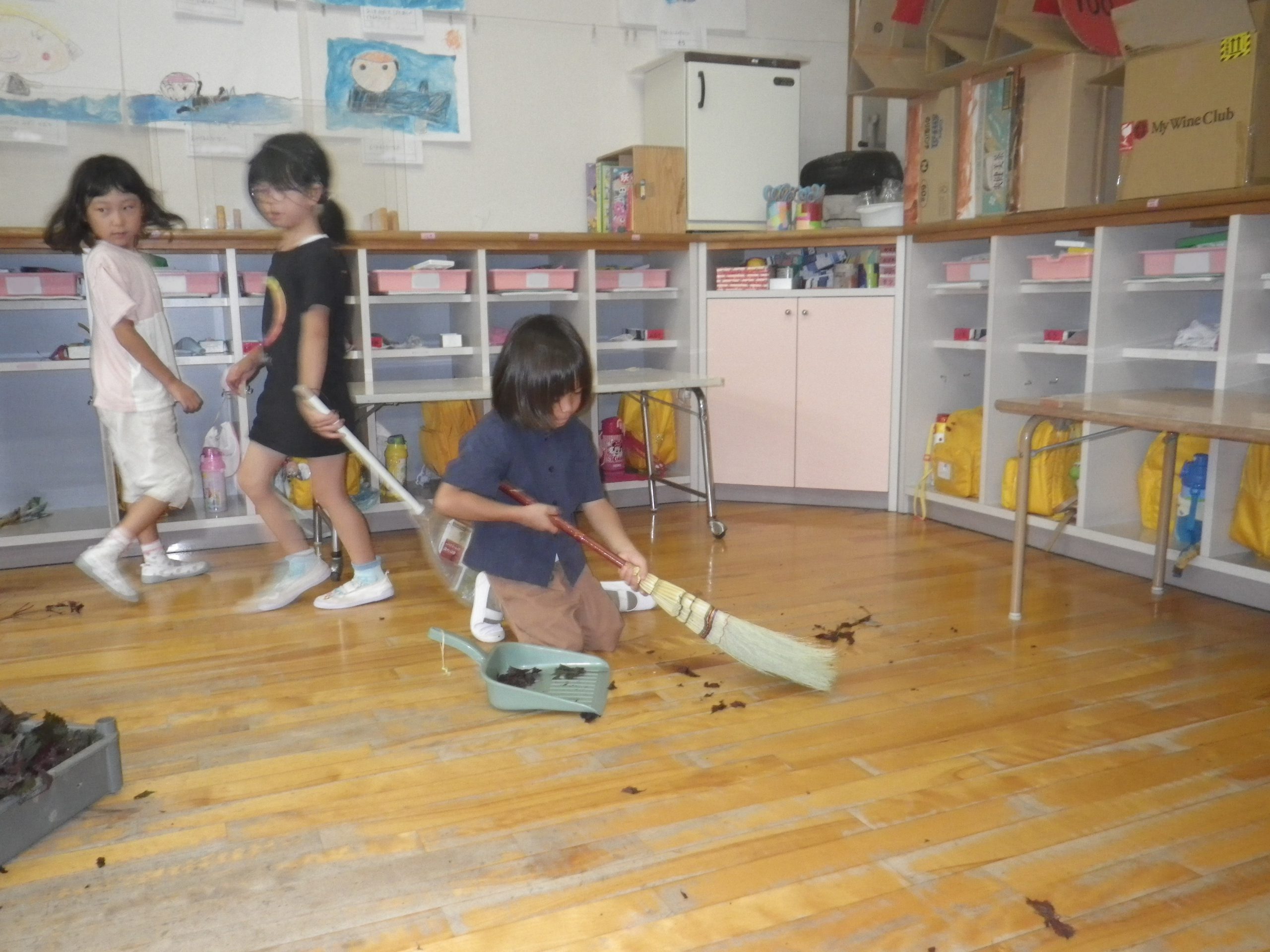 「いっぱい落ちてるよ。お掃除するね。」と気づいた子がほうきやちりとりを持ってきて、部屋をきれいにしてくれました。