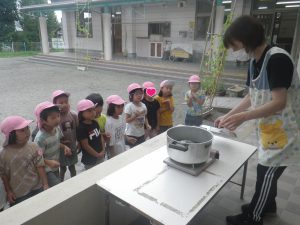 保育士の言葉に「楽しそう!」 子ども達も興味津々です。
