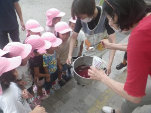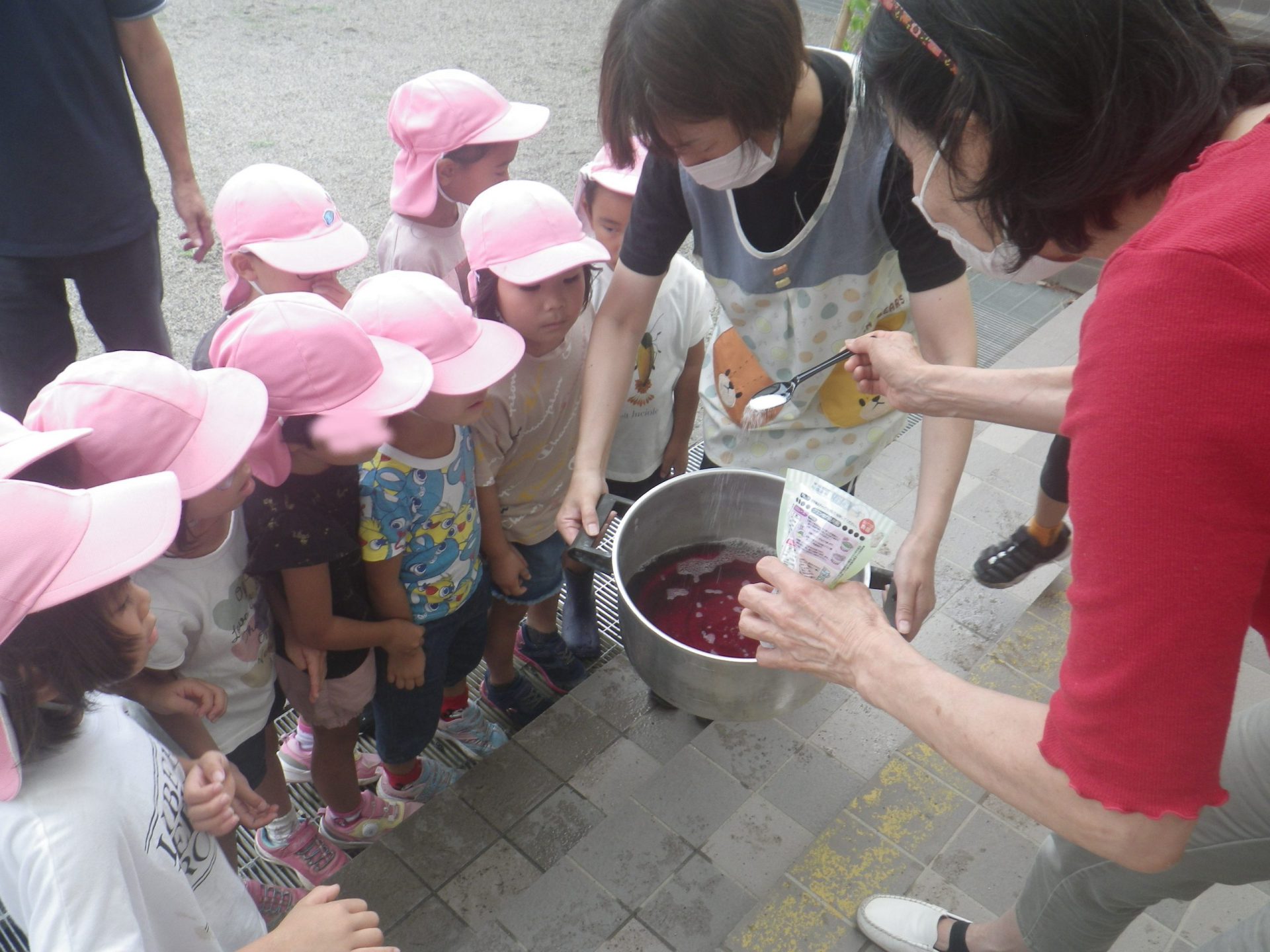おばあちゃんお手製のしそジュースを飲んだことがある子ども達がうれしそうに話していました。