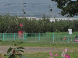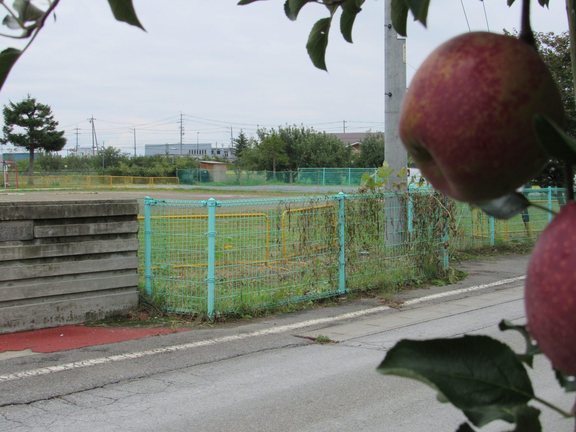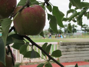 水没して撤去された旧園舎跡の前でも、リンゴが実りました。