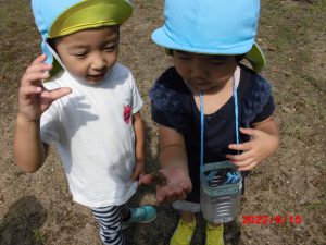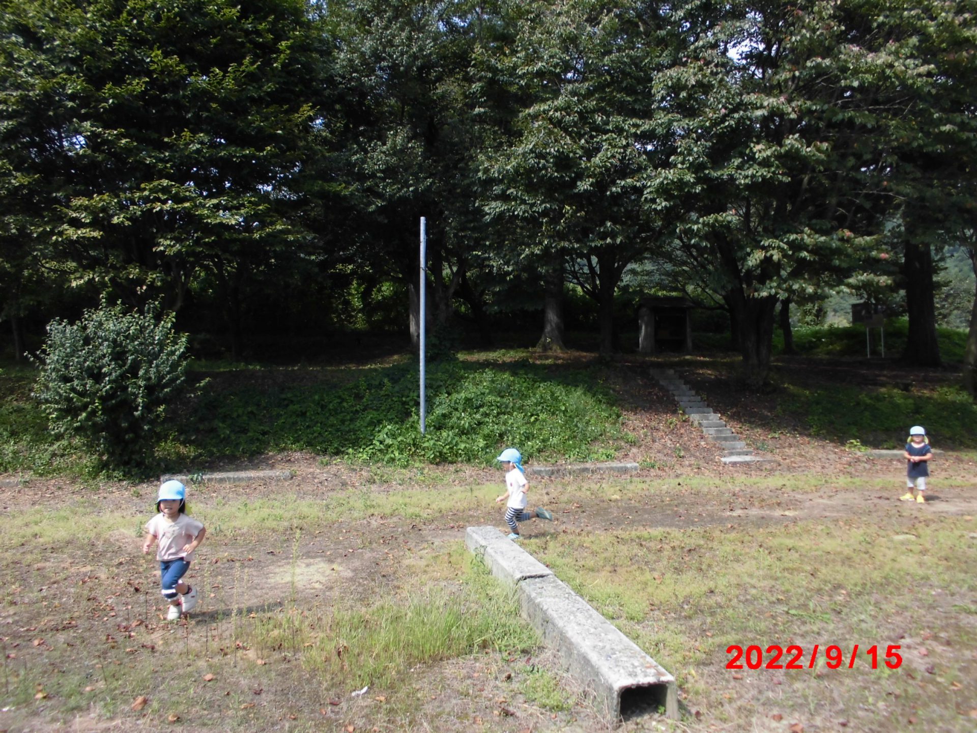 いつも遊びに行っている場所でも行くたびに子どもたちは新しい発見をします。皆思い思いに大自然の中、土手を全身をつかって登ってみたり、林の中を駆け回ったり、ふかふかの落ち葉・土の上を大喜びで走り回り楽しんでいました。
