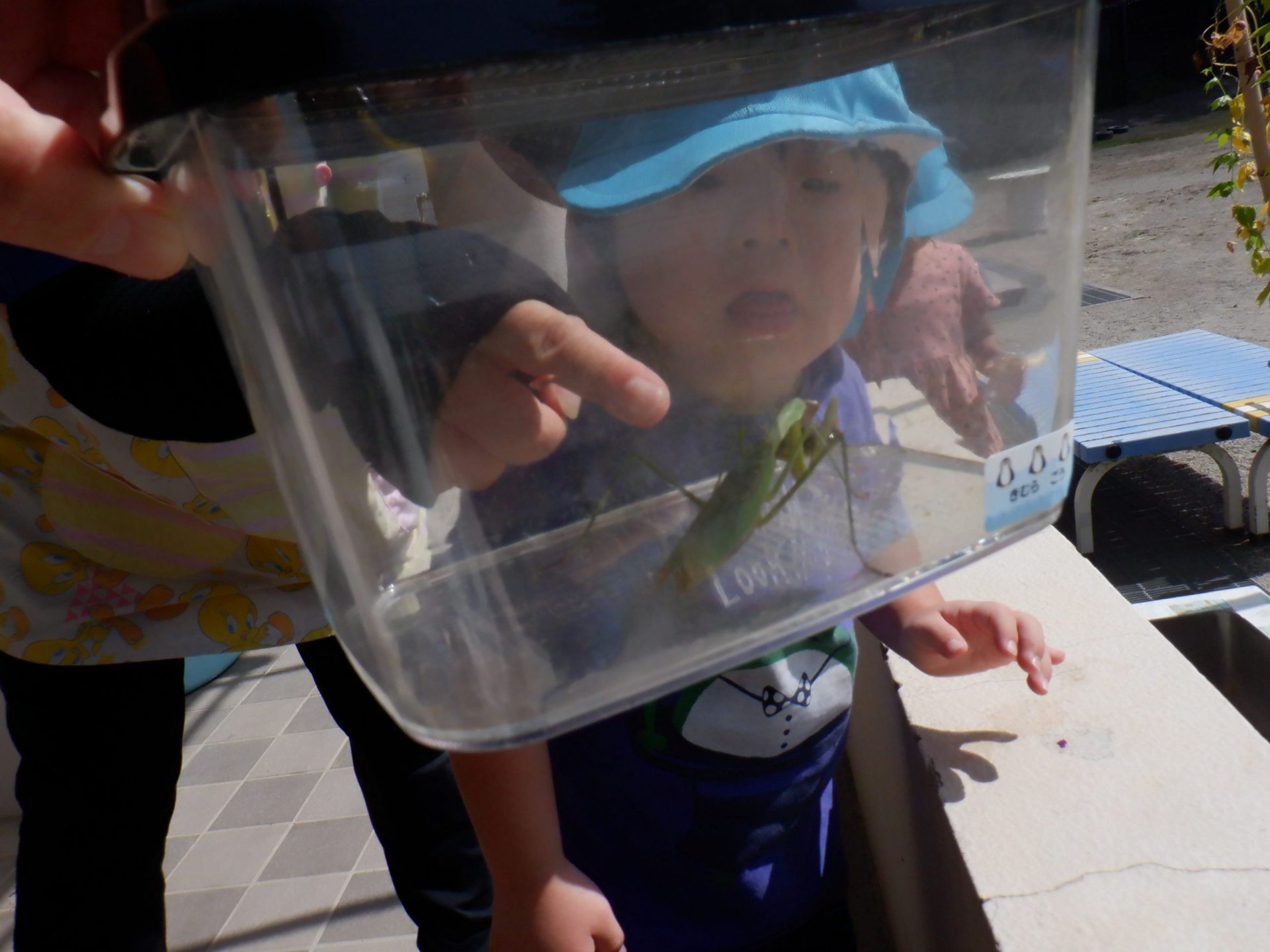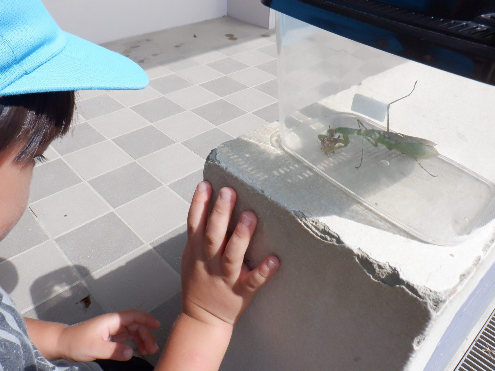 その後も園舎にきたカマキリがコオロギを食べる姿を見たり