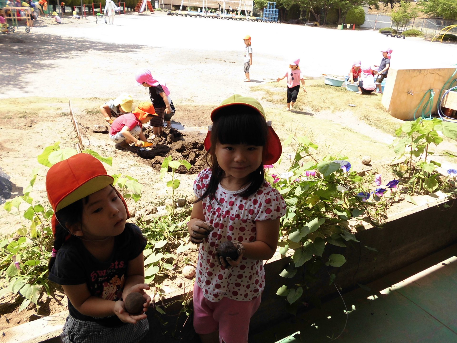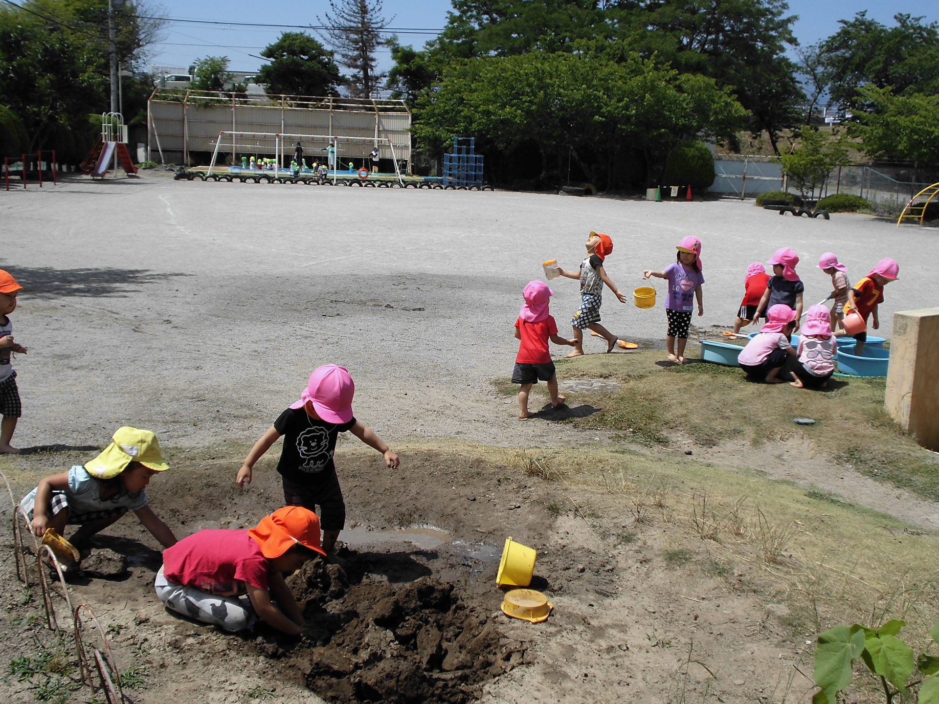 園庭では、土と水と温かい太陽が、子どもたちの遊びを、大胆に動かしてくれます。