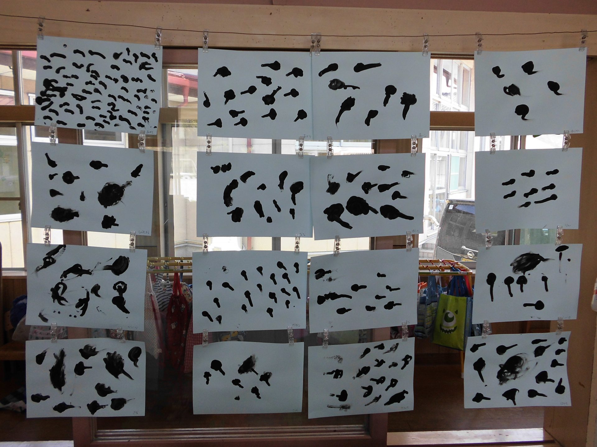 年中さんは帰ってきて、みんなで”おたまじゃくし”を描きました。田んぼにもたくさんいたね!