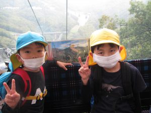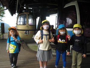 「これ、僕たちが乗って来たゴンドラだよね」「僕たちの保育園見えるかなー」