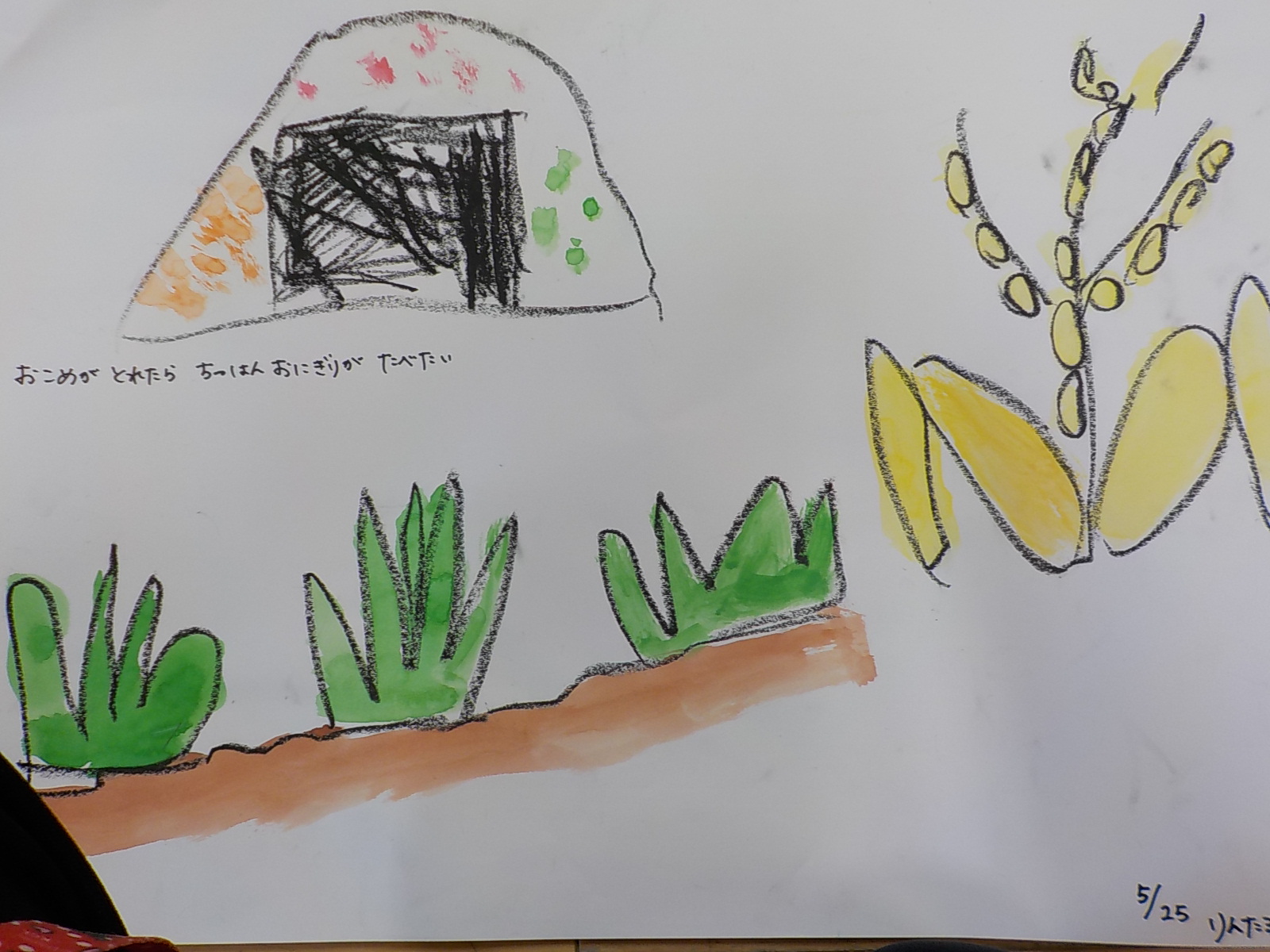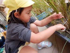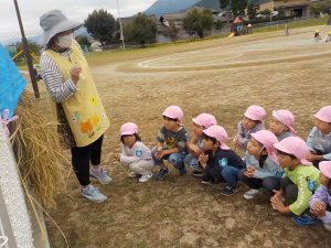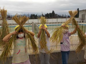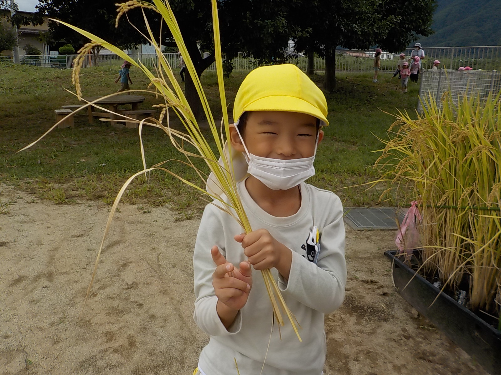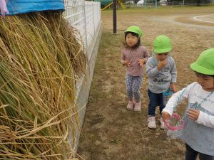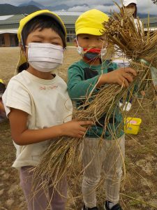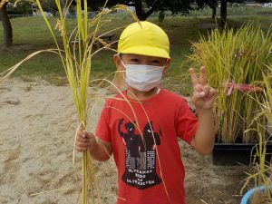 お米ができたらオニギリが食べたい、チャーハンにして食べたいと楽しみにしていた年長さん。