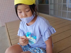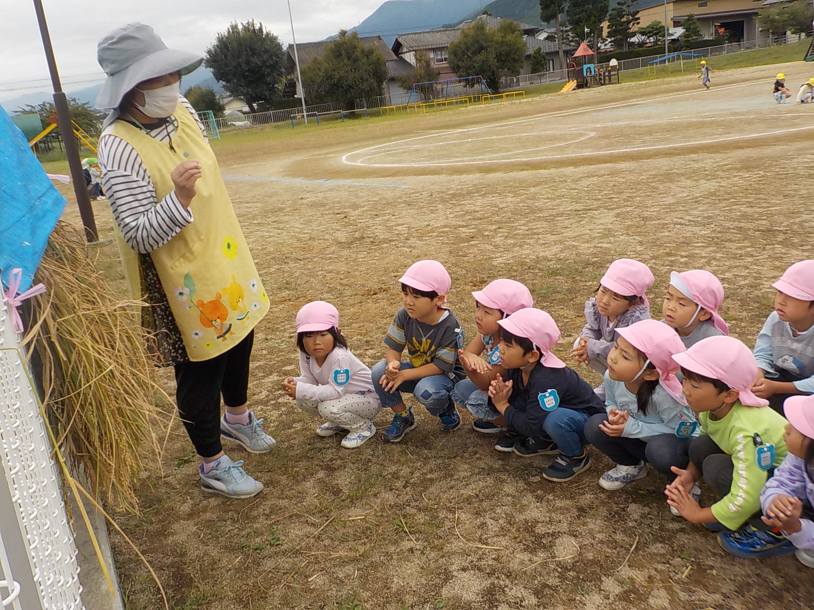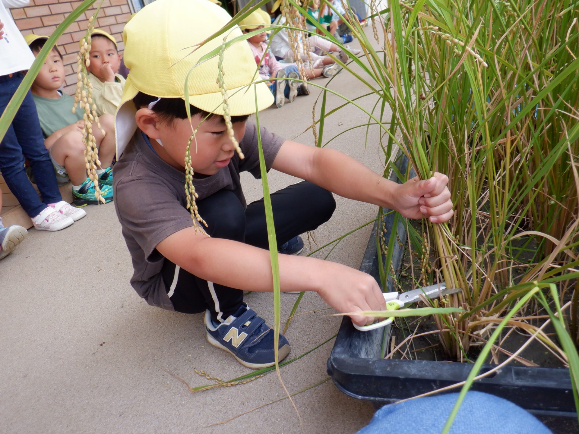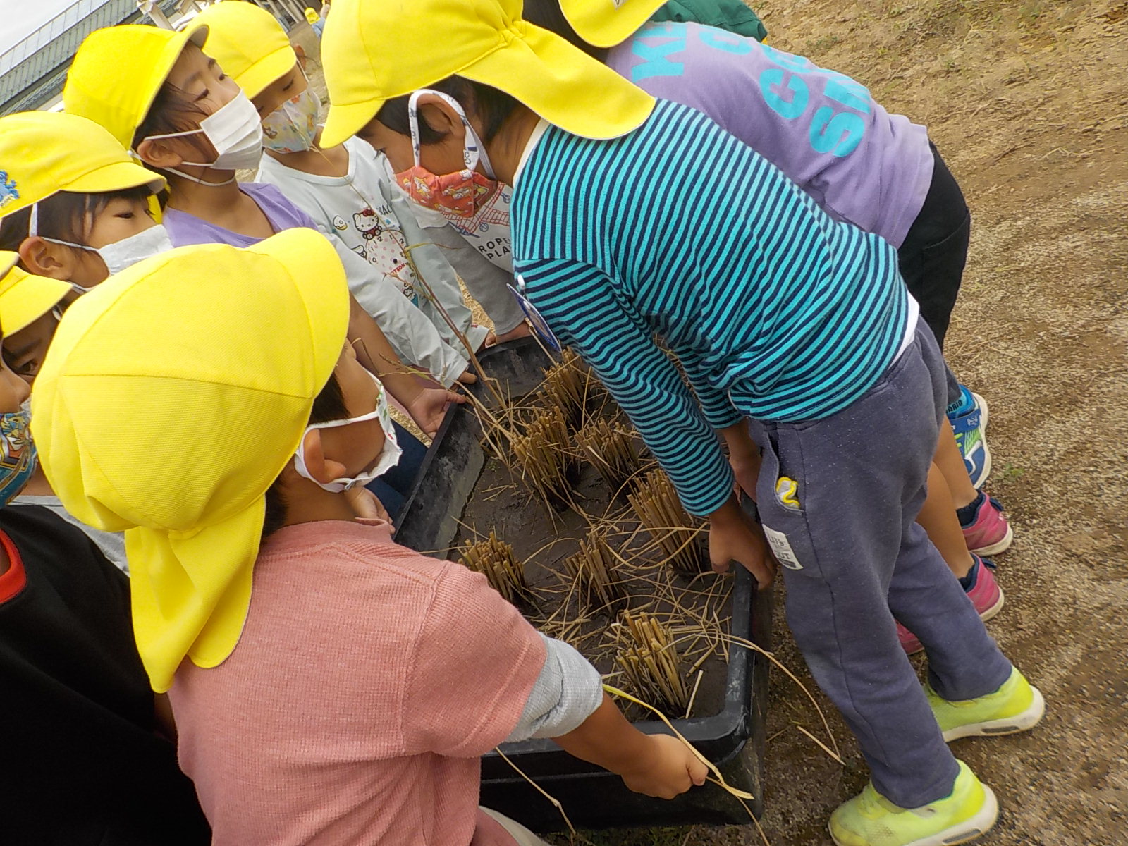 お米ができたらオニギリが食べたい、チャーハンにして食べたいと楽しみにしていた年長さん。
