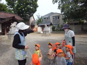 今日はいい天気。みんなで神社へ散歩に行きましょう。
