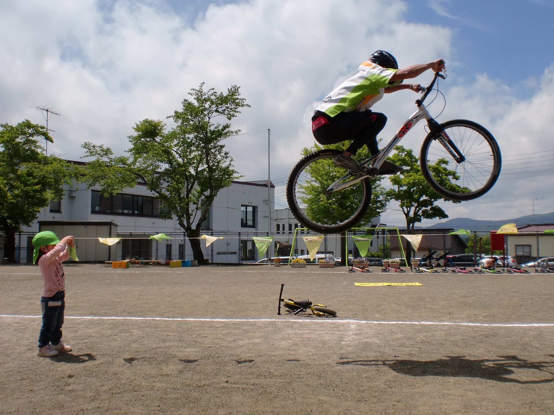 初めに、教えてくれた先生が自転車でこんなこともできるというところを見せてくれました。