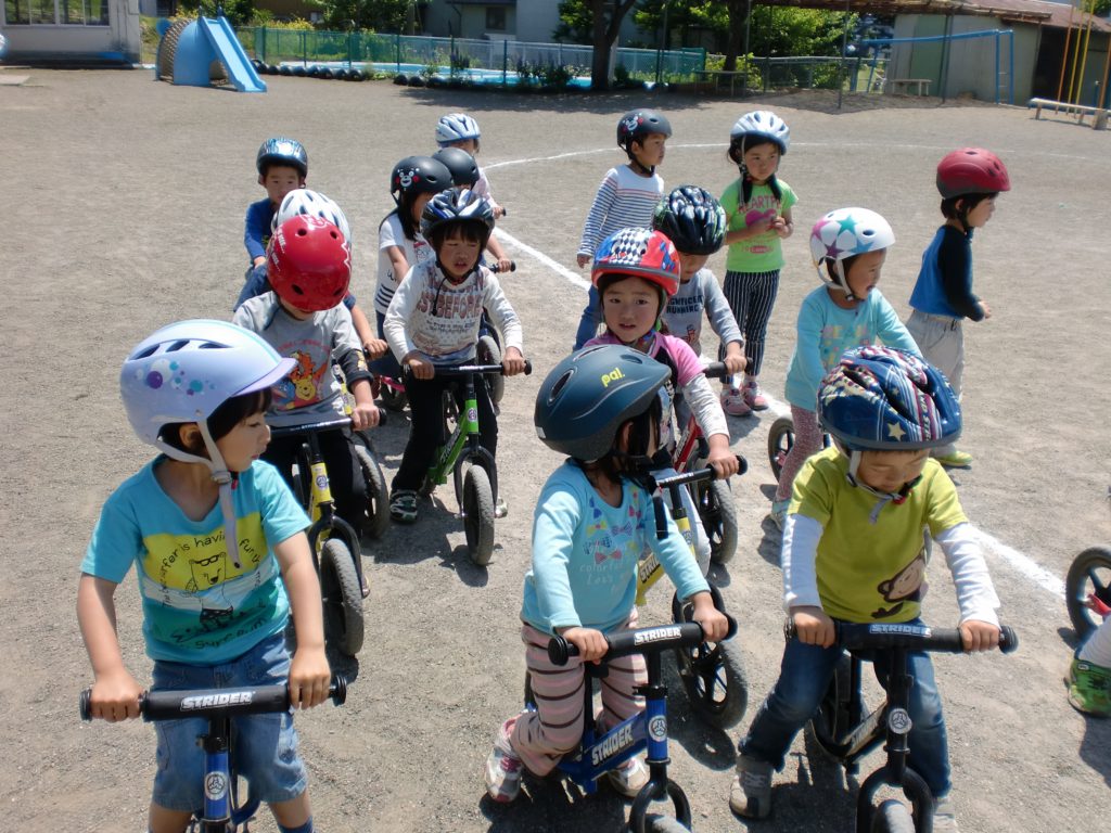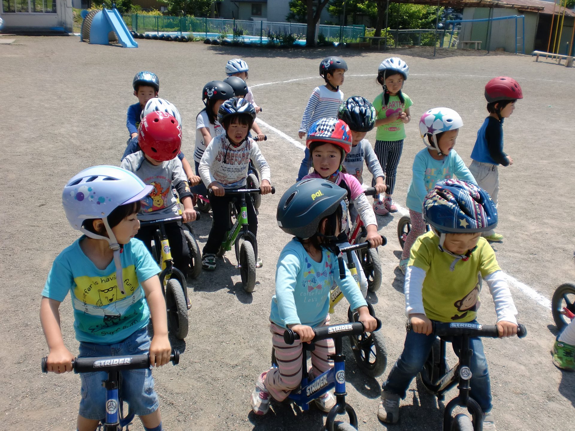 去年経験している4、5歳の子ども達はこの日を楽しみにしていて、この乗り物は何という名前でしょうと聞かれるとすぐに「ストライダー!!」と元気に答えていました。