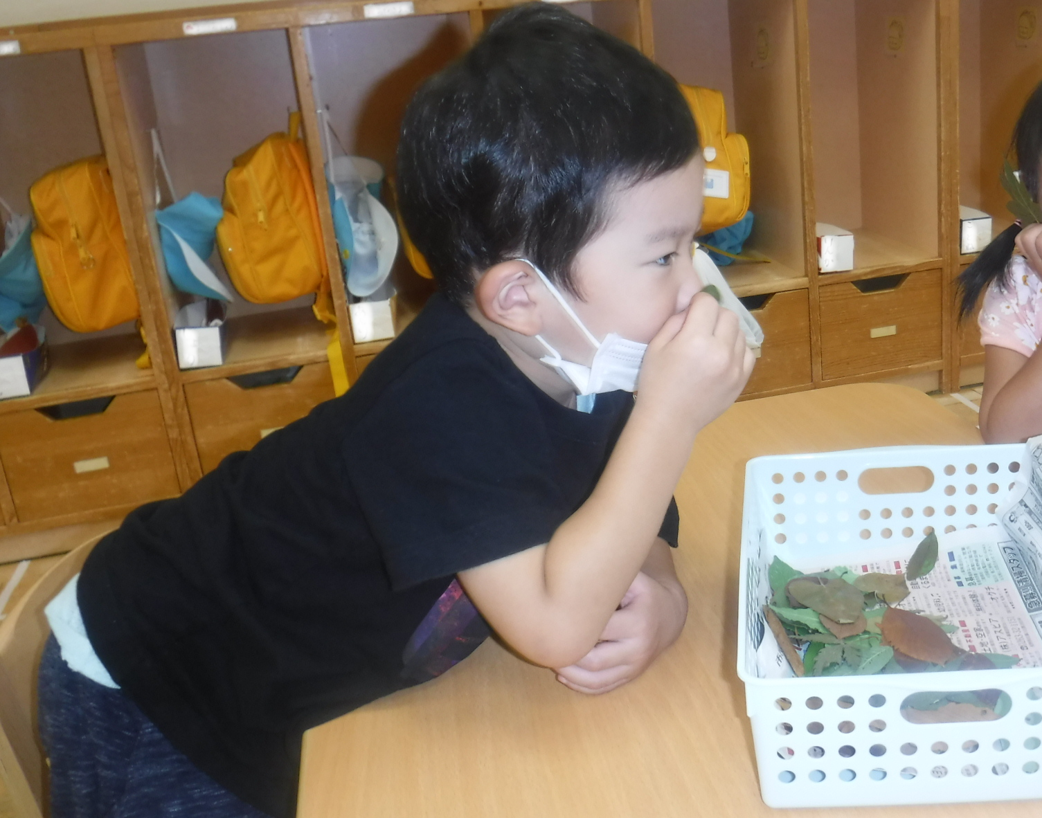 「こっちの葉っぱはどうかな?」 「草みたいなにおいだよ〜」