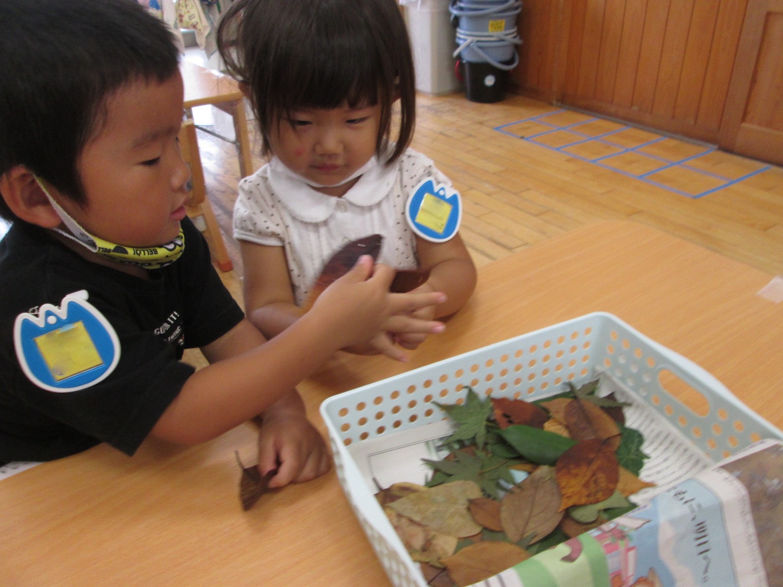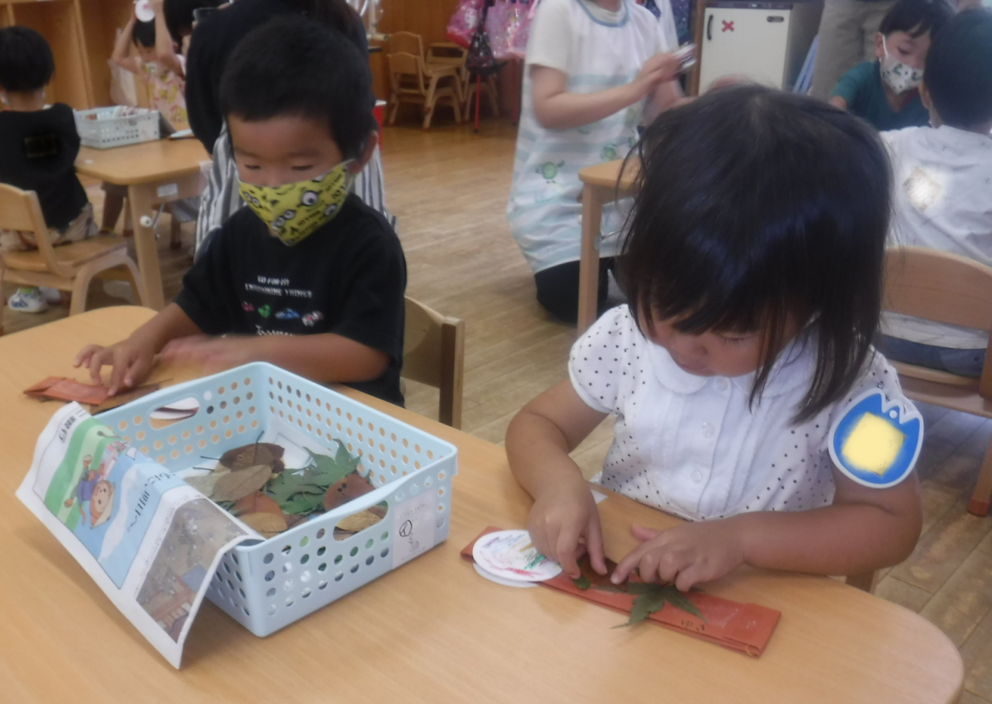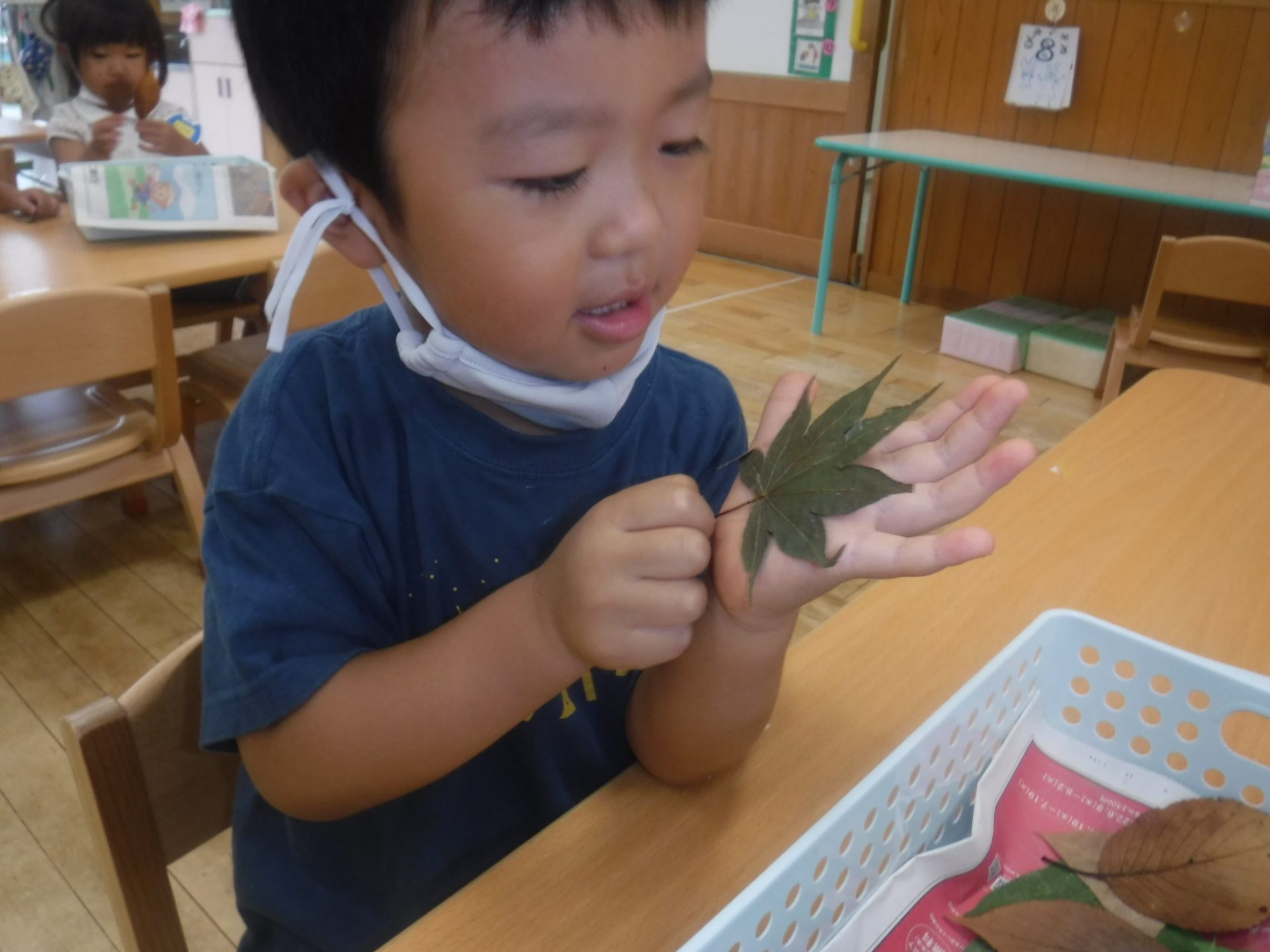 たくさんの種類の葉っぱが園庭にあることにも気がついたようです。