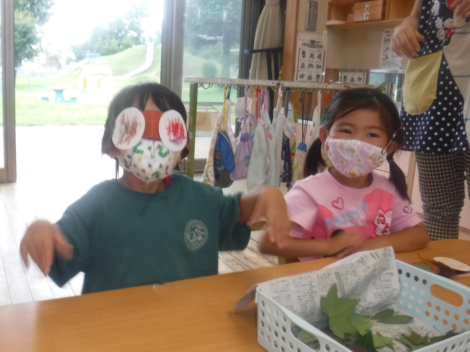 トンボが好きな葉っぱ付きのお面を作りました。