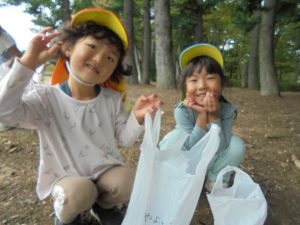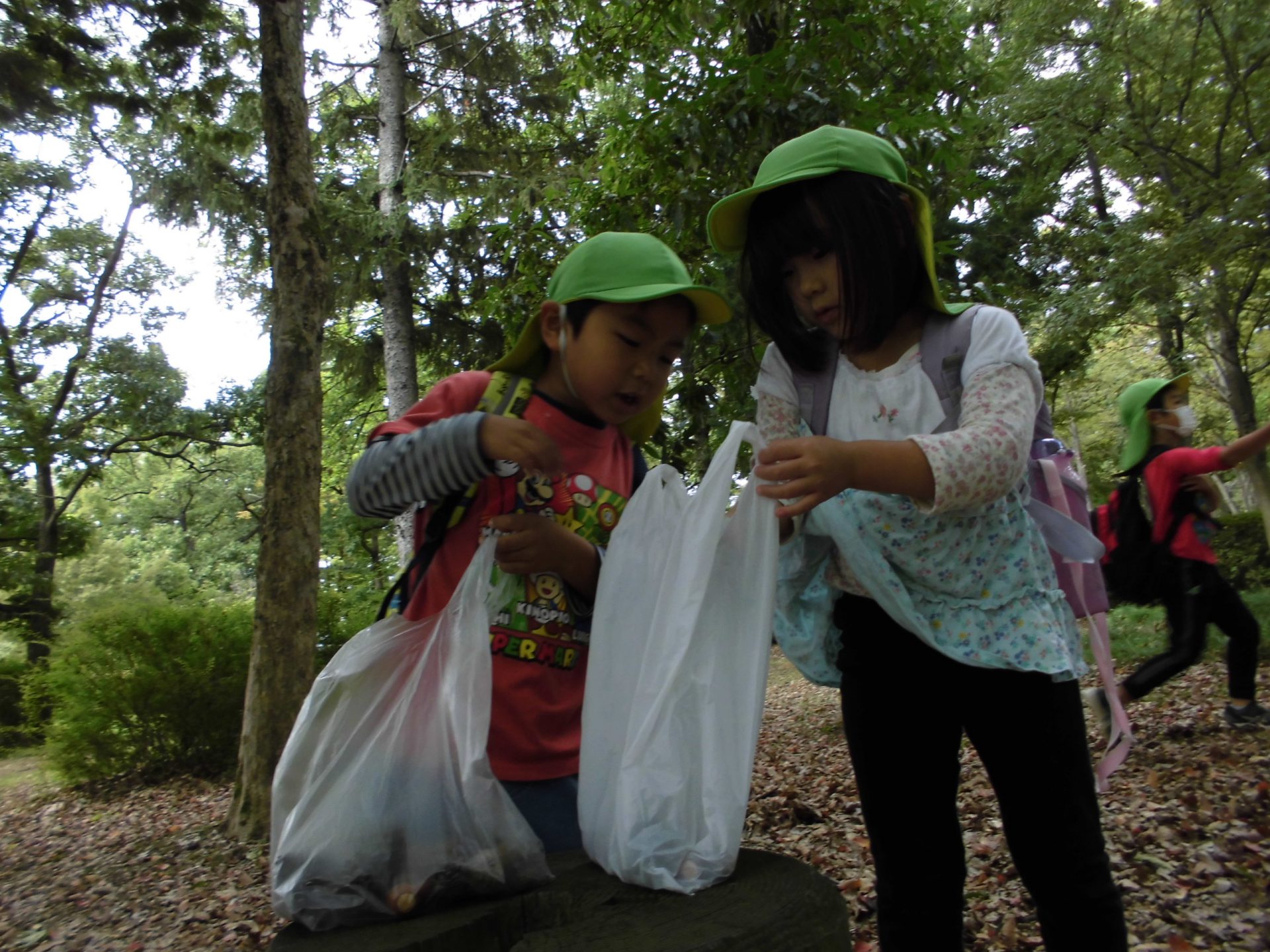 緑のどんぐりを見て「すいかみたい!」と発見する子もいました✨