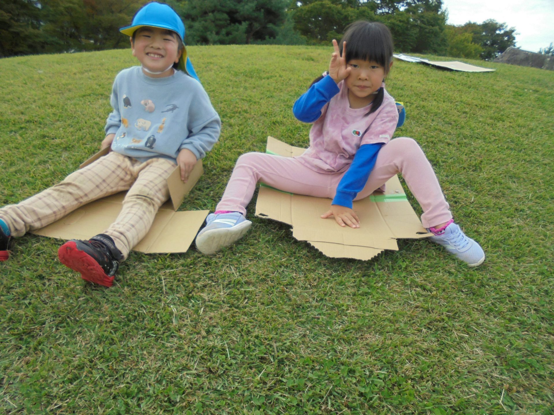段ボールを使ったり坂を下ったりしながら滑って気持ちよかったね😊