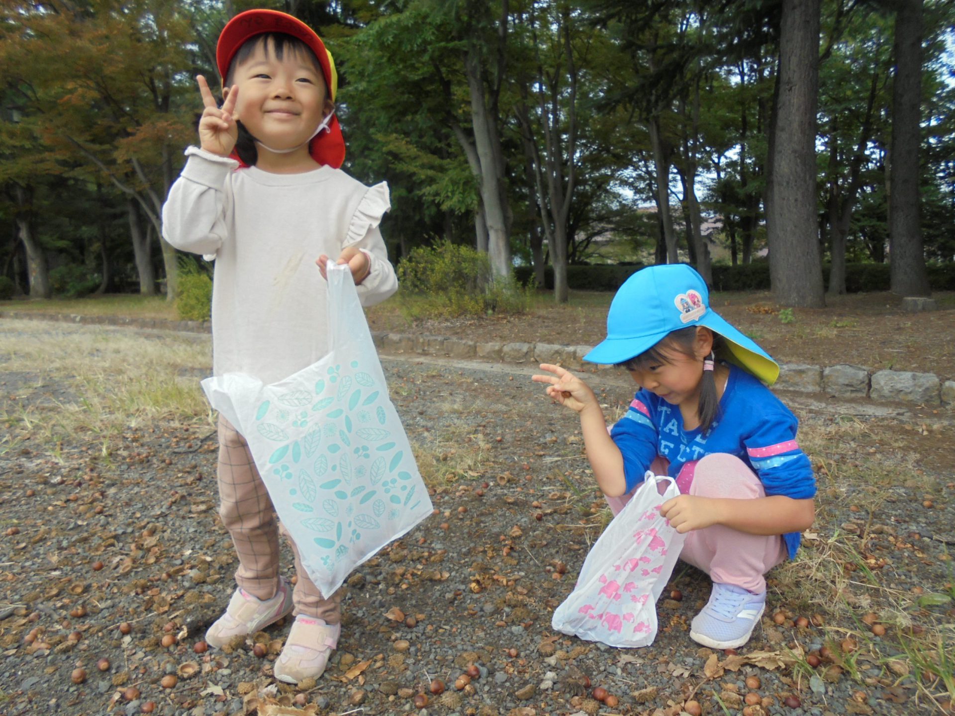 川中島古戦場で、山滑りや秋の木の実探しを楽しみました🌳