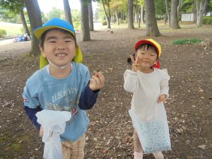 大きさも形も違うどんぐりが落ちていることにも気づきました😊