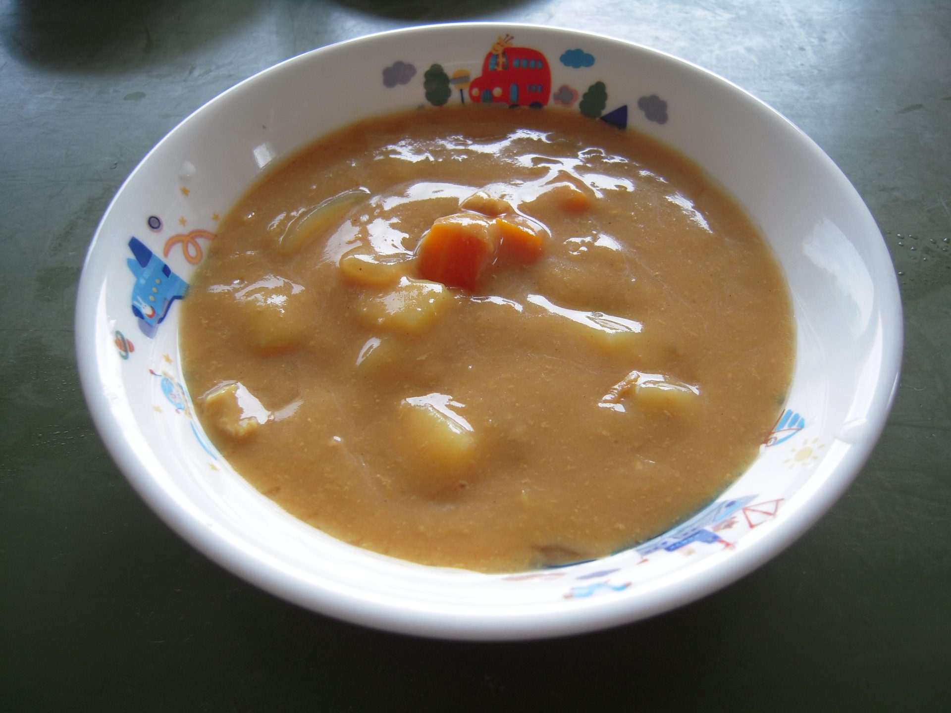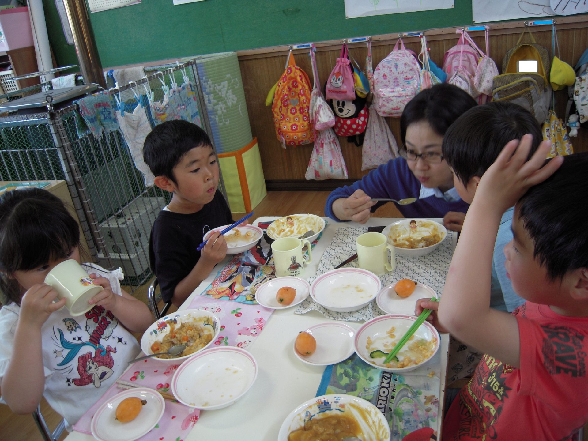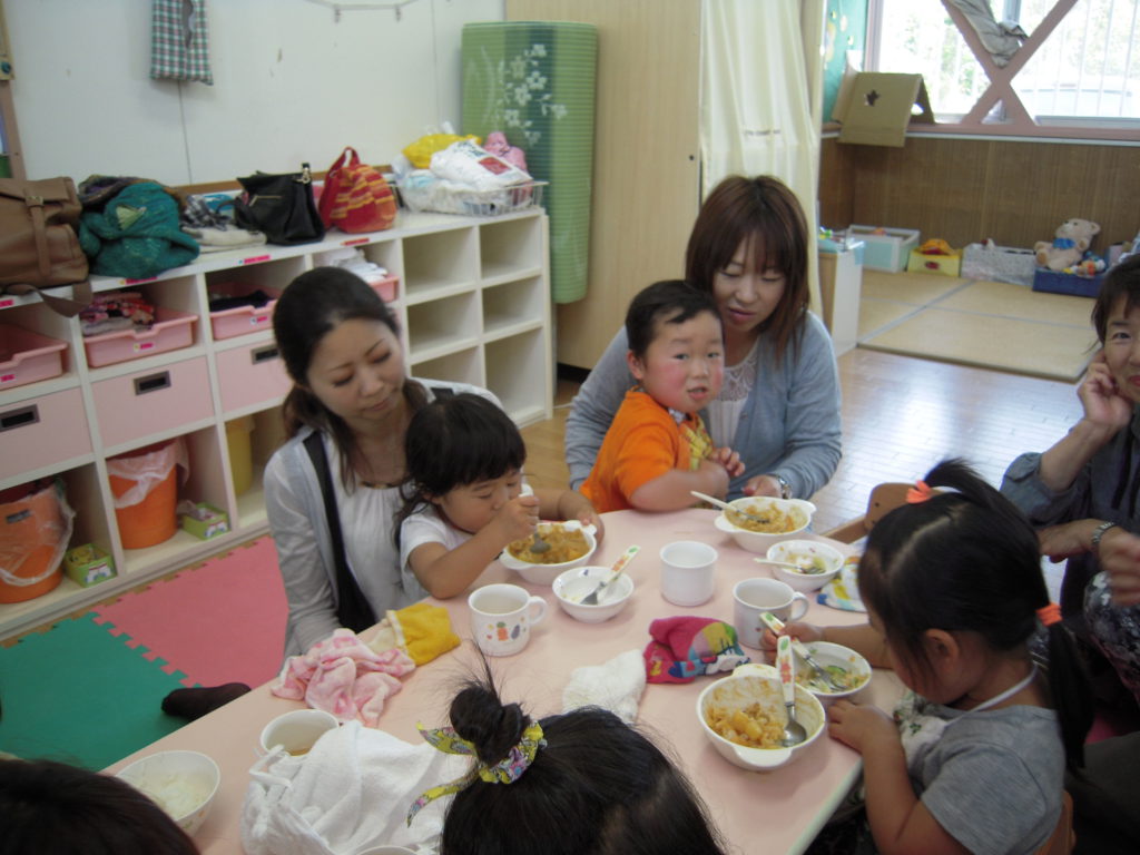 参観日のメニューは、町内4保育園全て統一で、保護者の方々から「食べてみたいです」とご要望いただいた、「ミルクカレー」です。