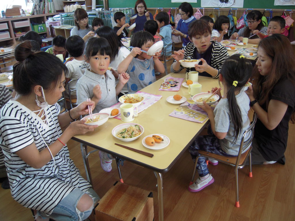 今月は食育月間です。毎年この食育月間の6月に保育参観とあわせて、子どもたちの給食の様子を見ていただき、給食を試食していただく給食参観を実施させていただいており、毎年栄養士もそこにお邪魔させていただいています。