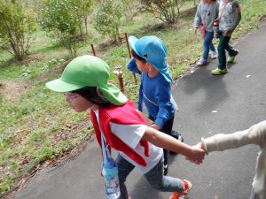 疲れてしまった年少さんの手をつなぎ助けてあげていました。