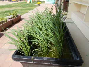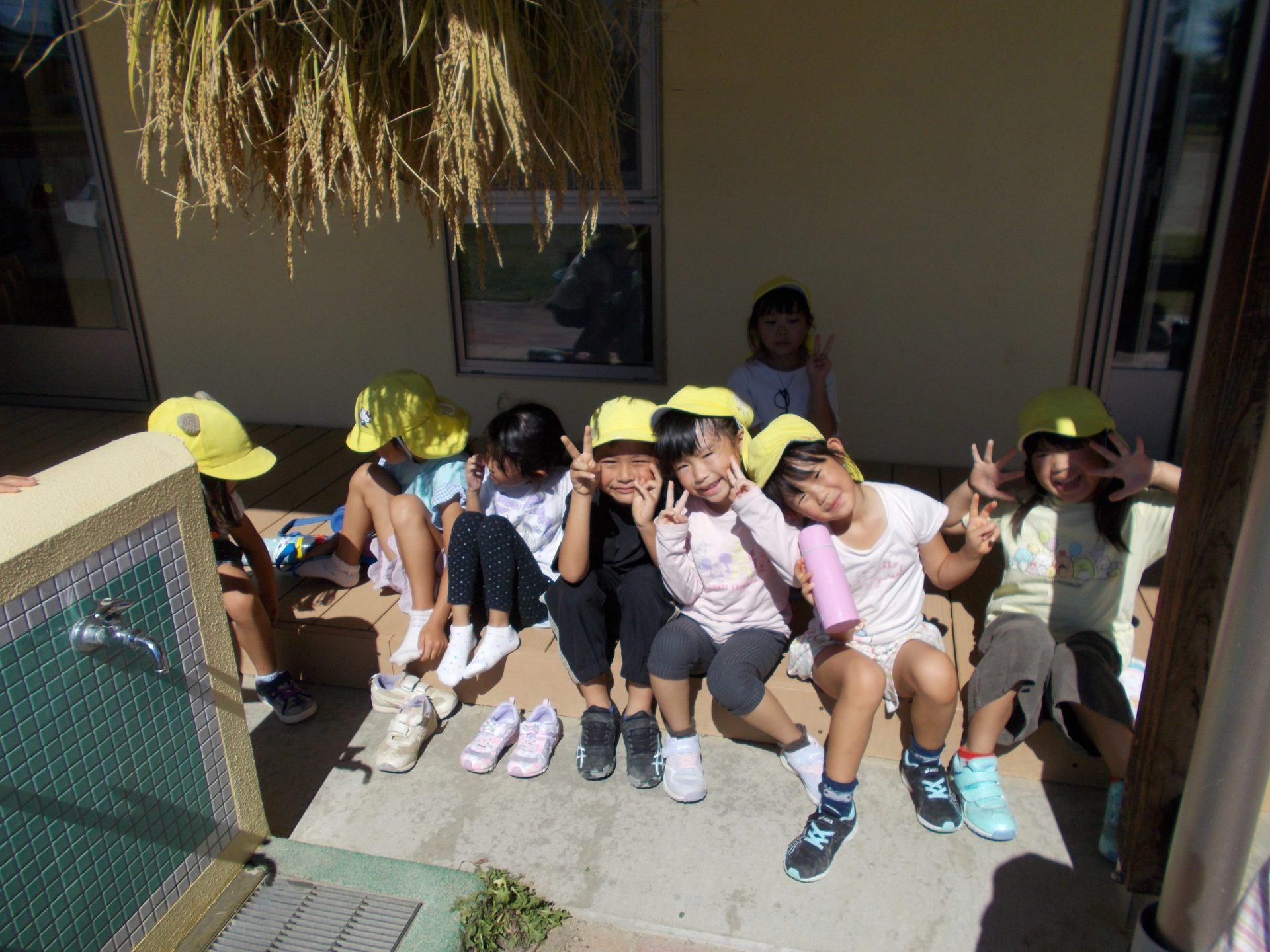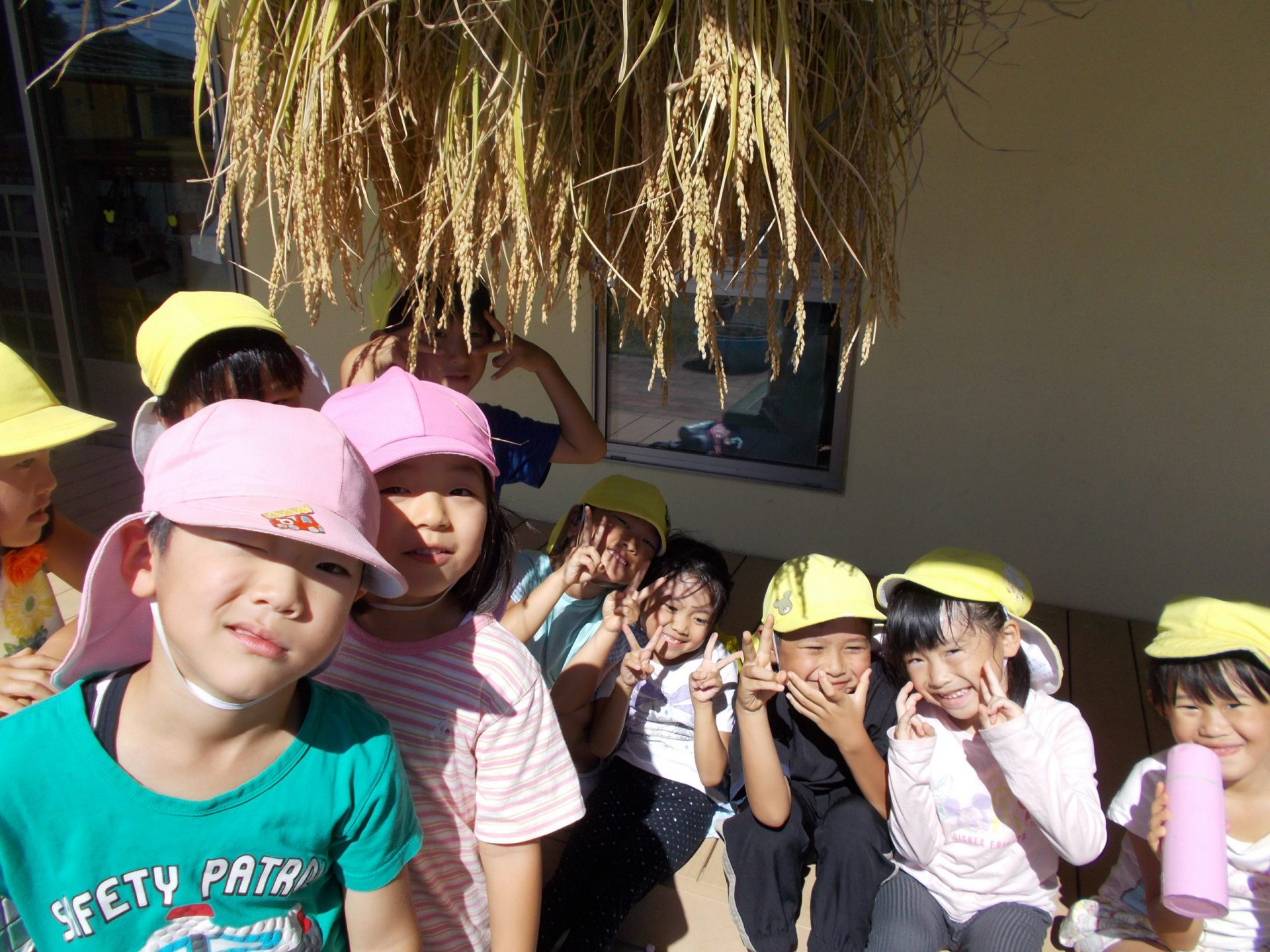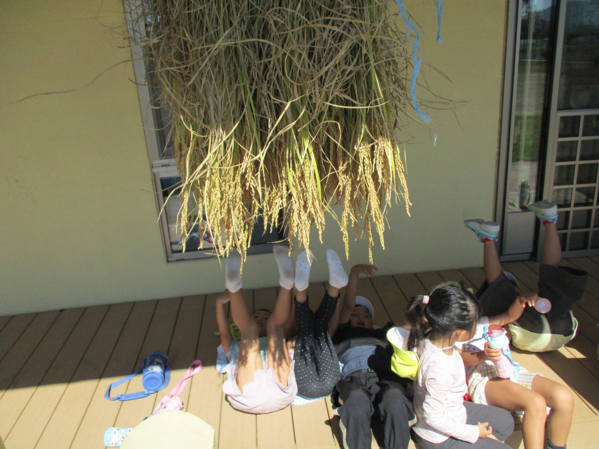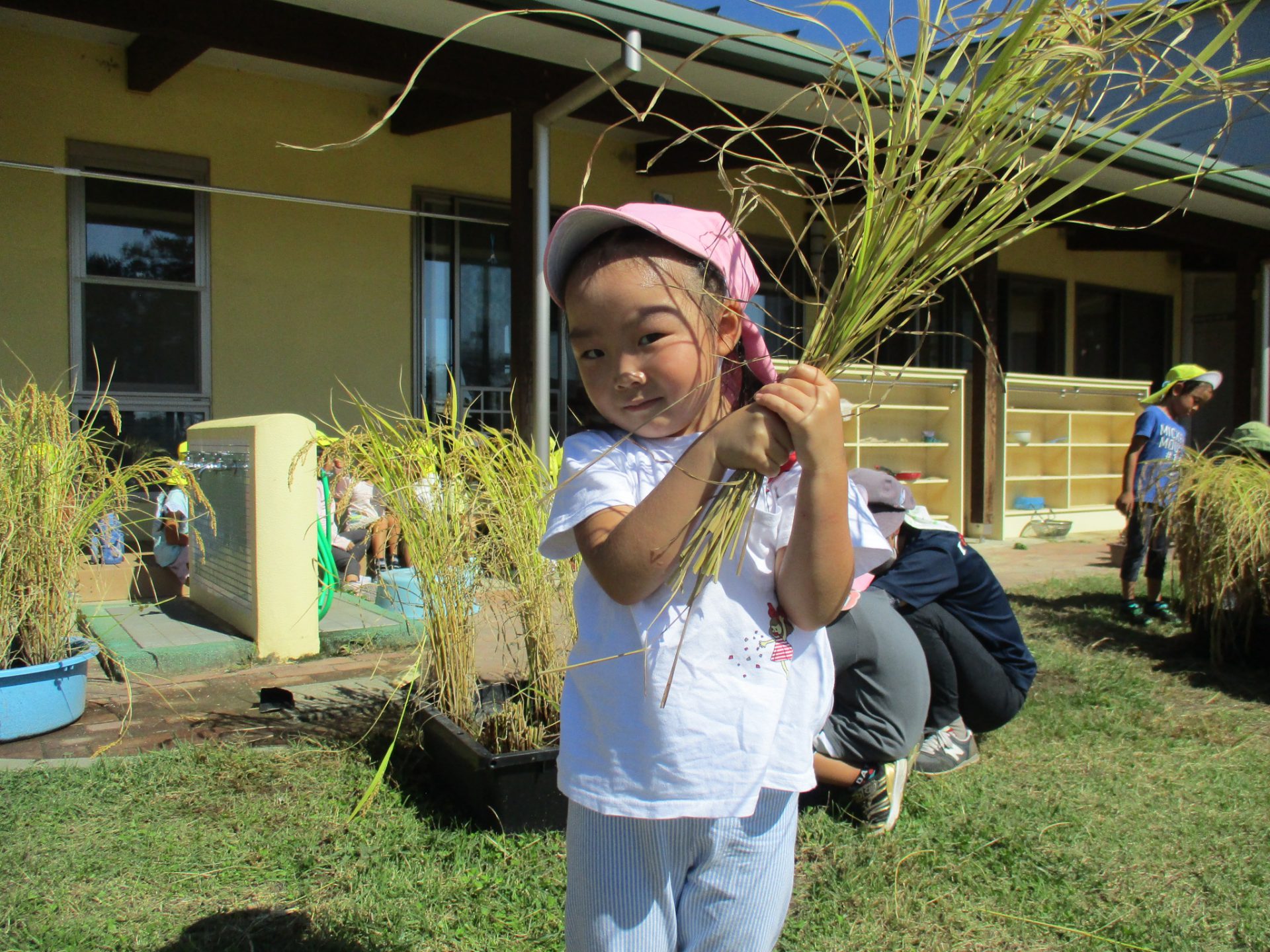 5月にタライ田んぼにみんなで田植えをしました。あっという間に大きくなりいよいよ稲刈りの時期になりました。