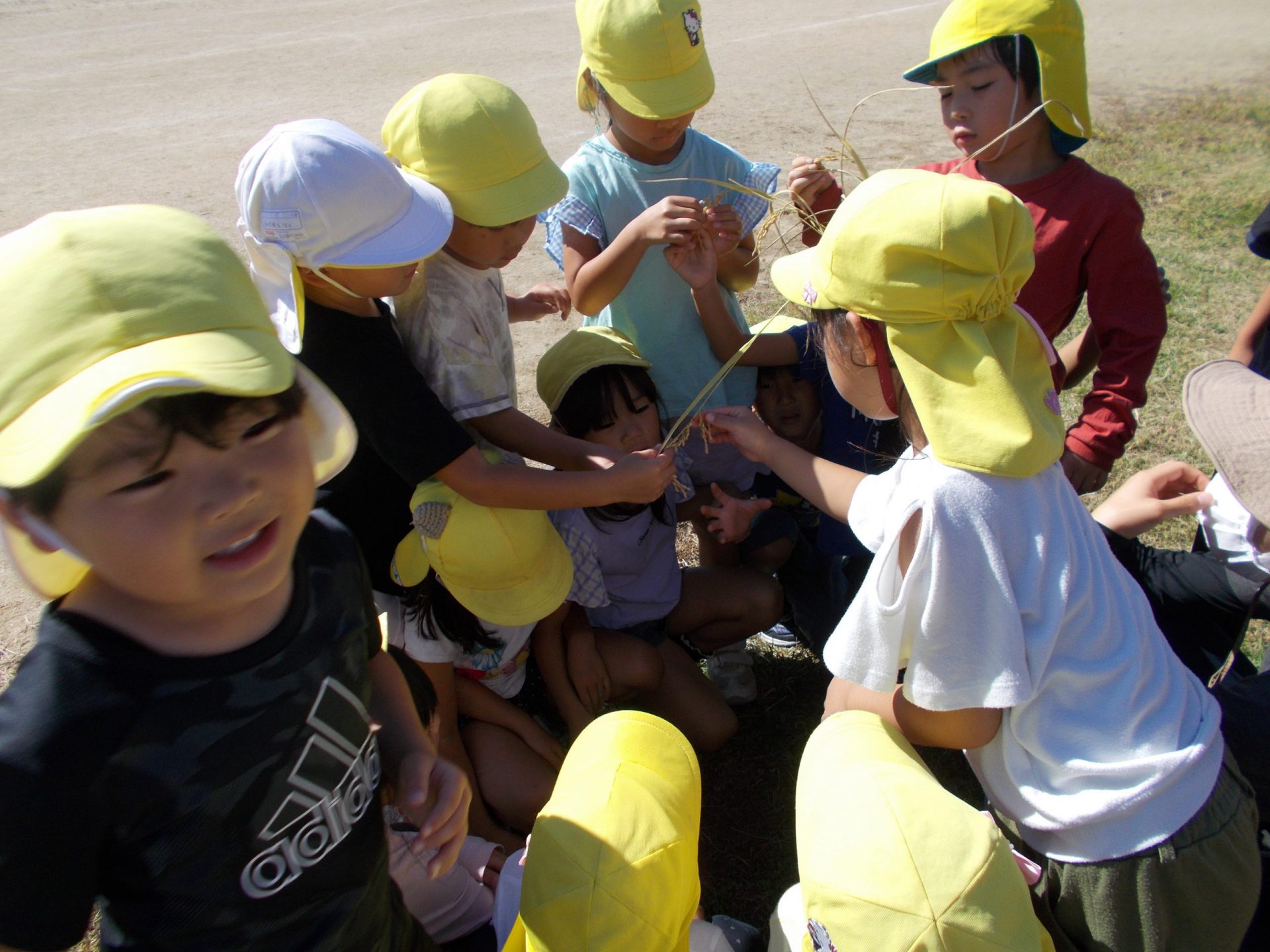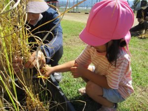 穂がつきだして、「お米ができてきた!」と喜ぶ子どもたち。