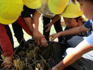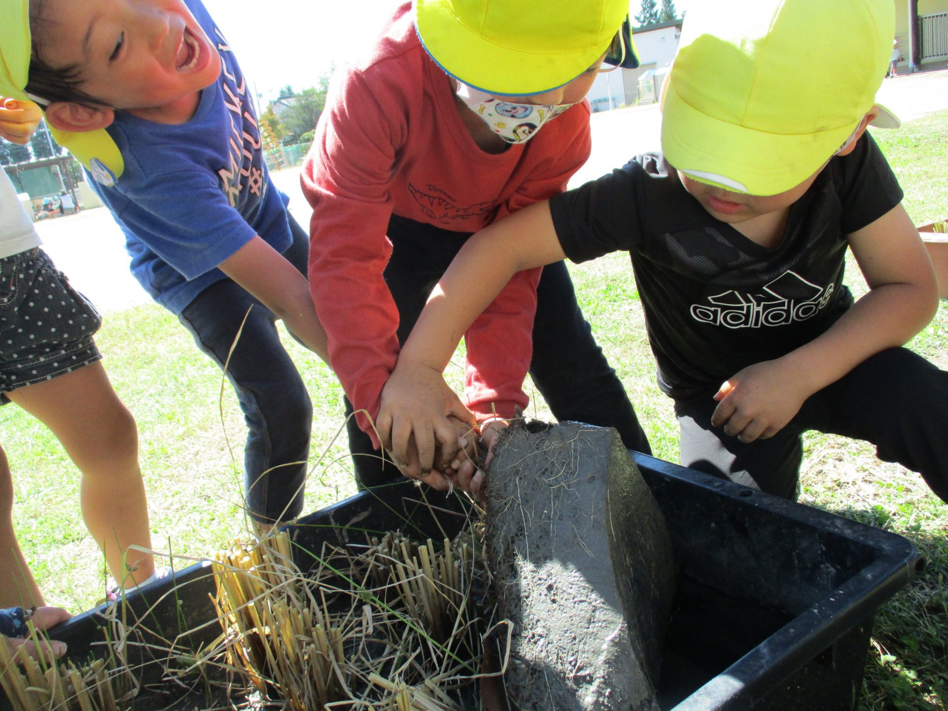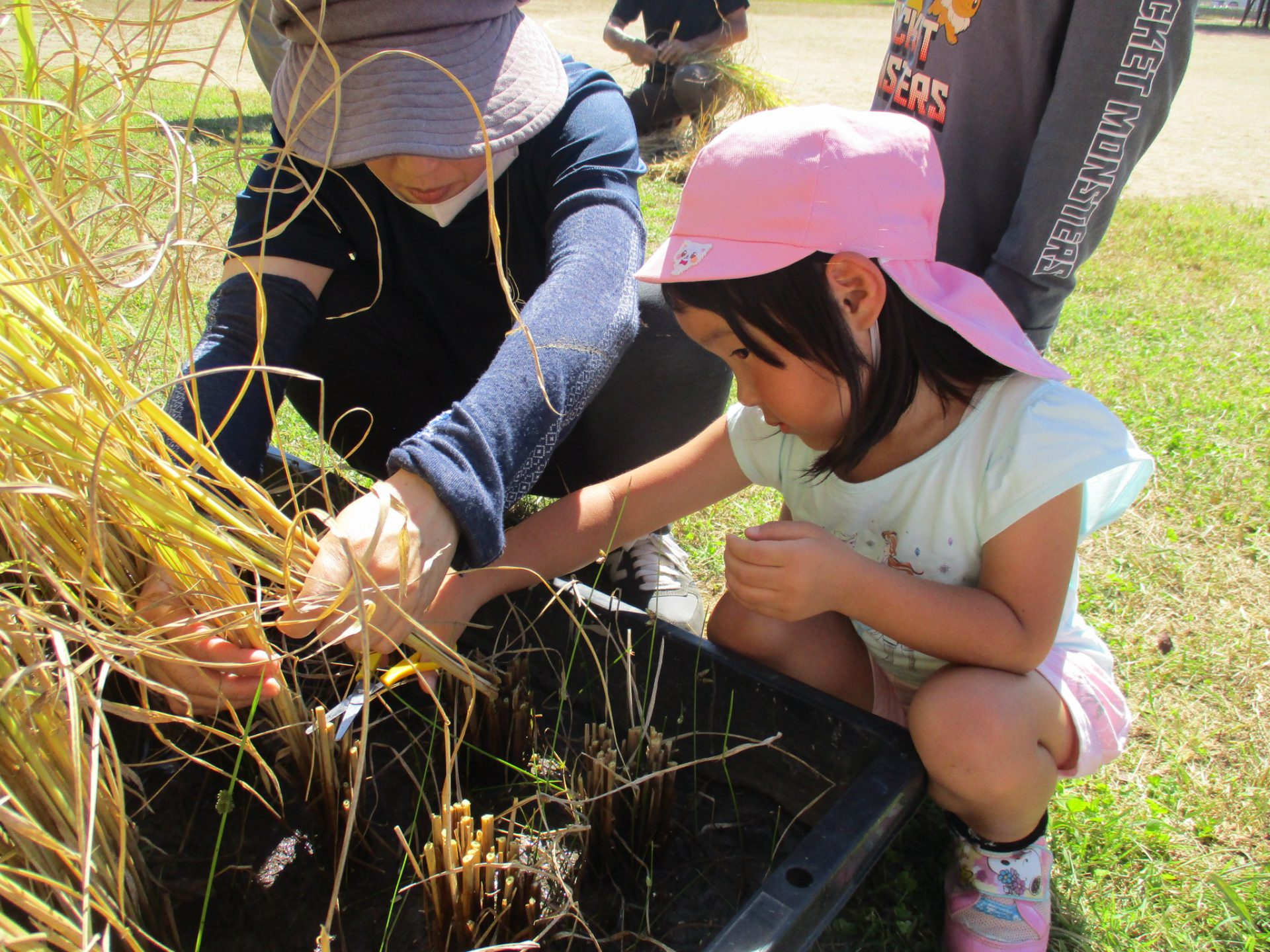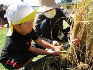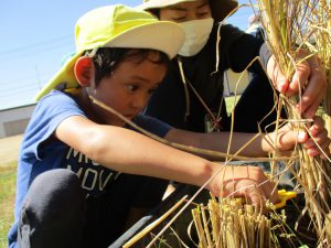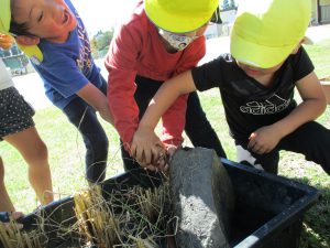 あたり前のように毎日食べているご飯ですが、自分たちで育てることでどうやって育つのかな?と観察したり、発見したりして様々な気付きがありました。育てていくなかで水をきらさないようにすることや脱穀の大変さにも気付けたと思います。作っている方へ「ありがとう」の気持ちも感じてもらえたらなと思っています。