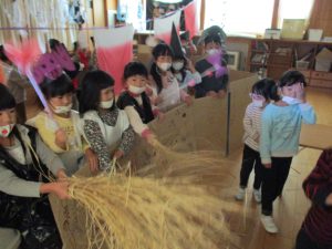 脱穀した後のわらも何かに使えそうだよと考えたのが...