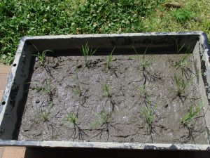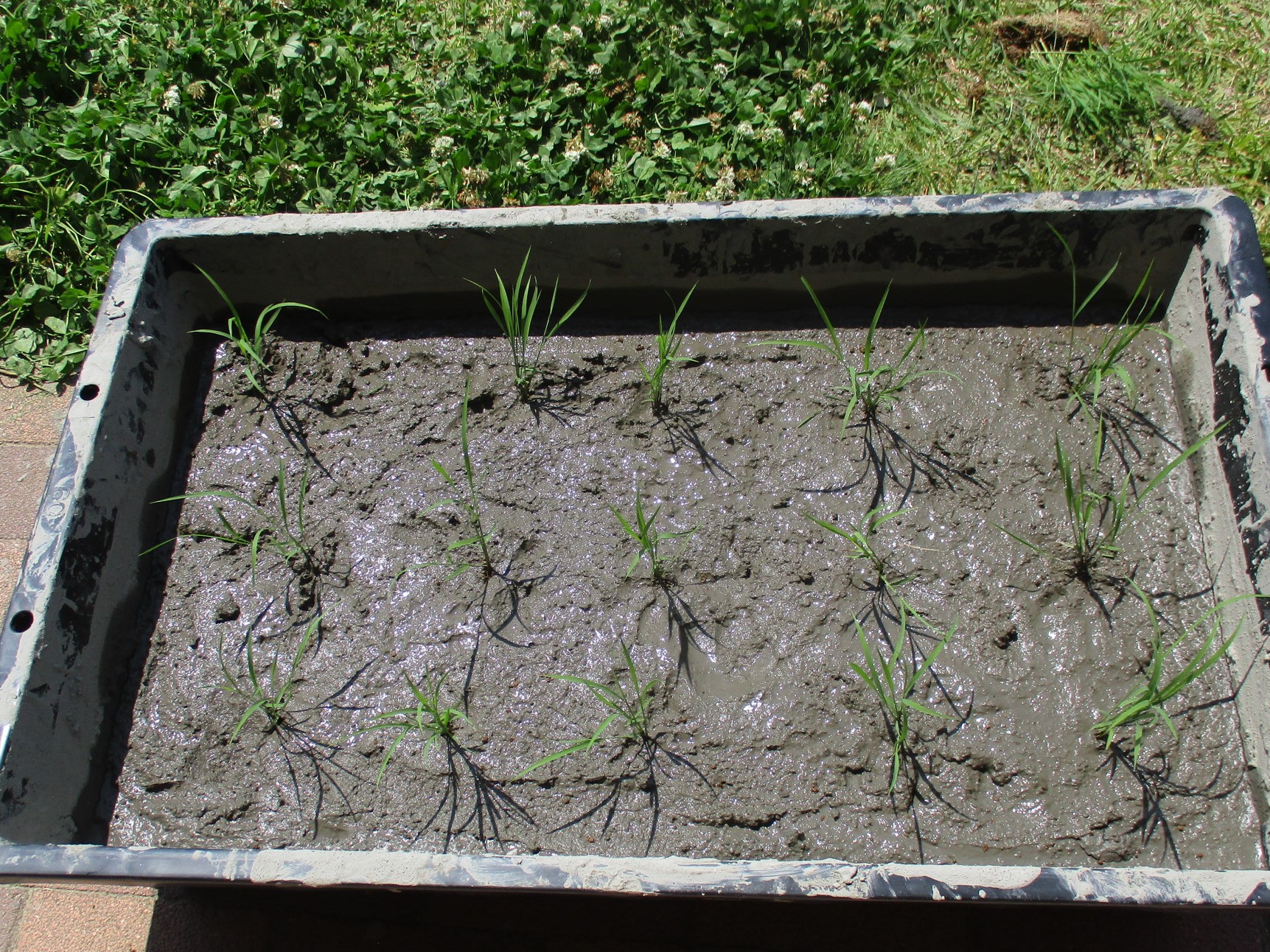 田植えをしてから「水をきらさないように」と毎日タライ田んぼの様子を見て、水をあげてお世話をしていました。