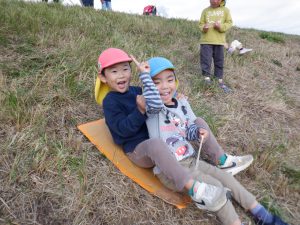 ・今後も、土手というたくさんの経験ができるフィールドを活用し、子ども達が楽しみながら全身を使って遊ぶ機会を作っていきたいと思いました。