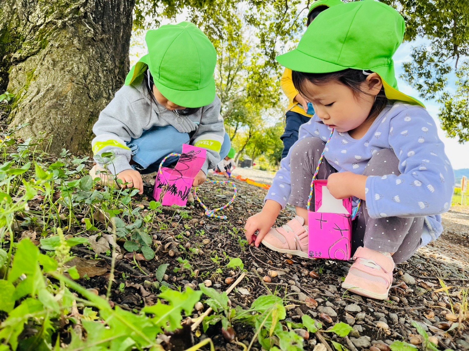 落ち葉や木の実を集めたり、寒さに負けず、身体を動かして遊んでいます。