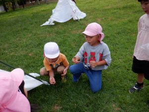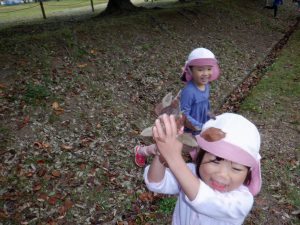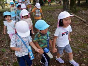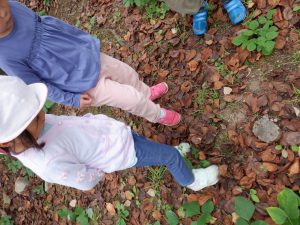自然の中で一緒に遊びながら、仲良くなった年少さんと年中さん。異年齢の関わりも大切にしながら、これから交流を深めていきたいと思います。