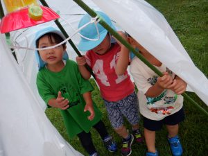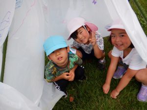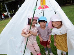 仲良くなった年中さんの友達ともテントに入って楽しみました。