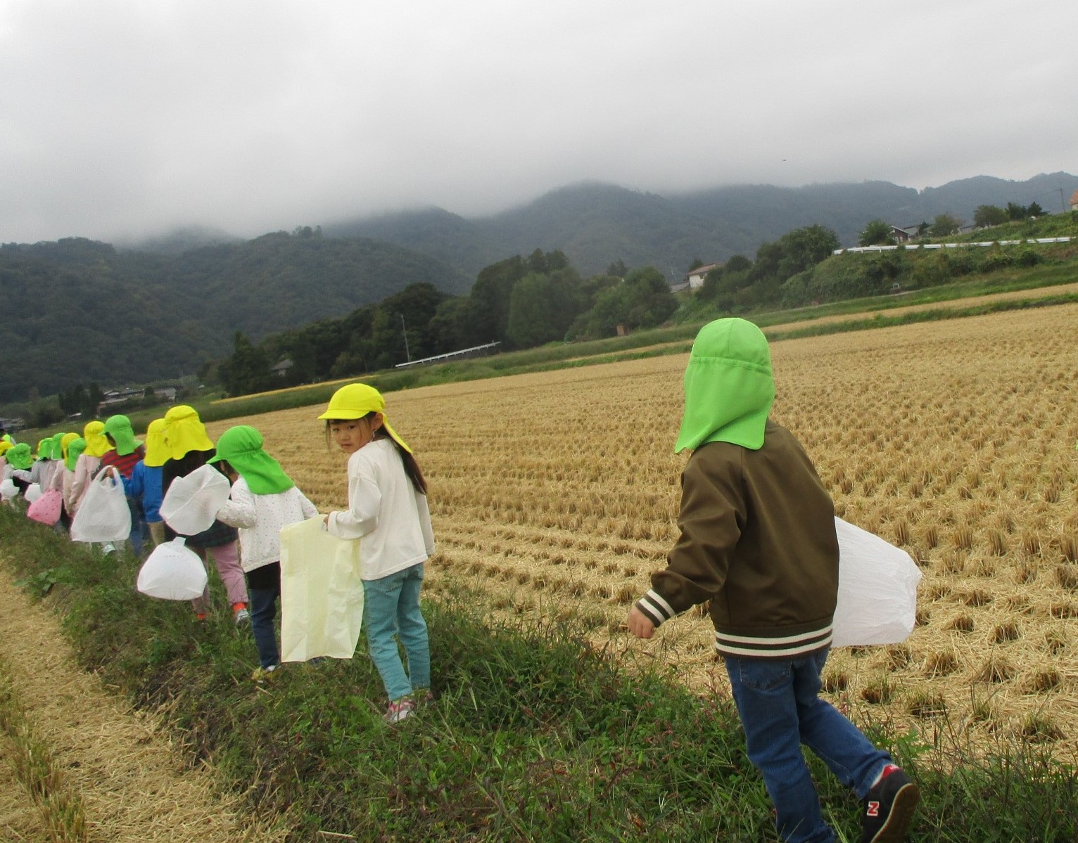 田んぼの畦を通り歩いていると、子どもたちのトトロの『さんぽ』の歌が聞こえてきました♪