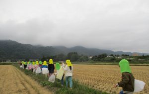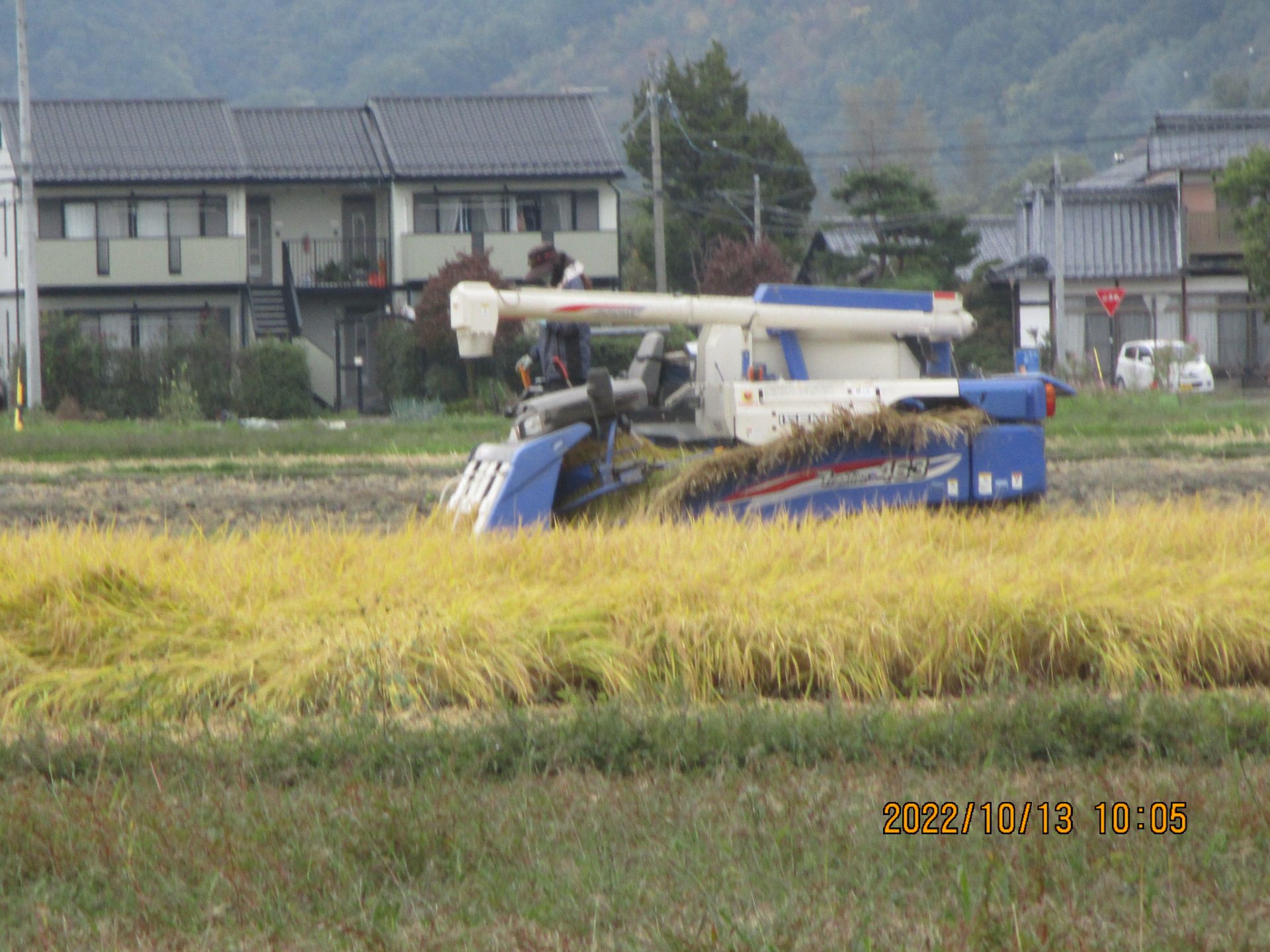探索中は前の田に大きなトラクターが来て、稲刈りを目の前で見ることができました。