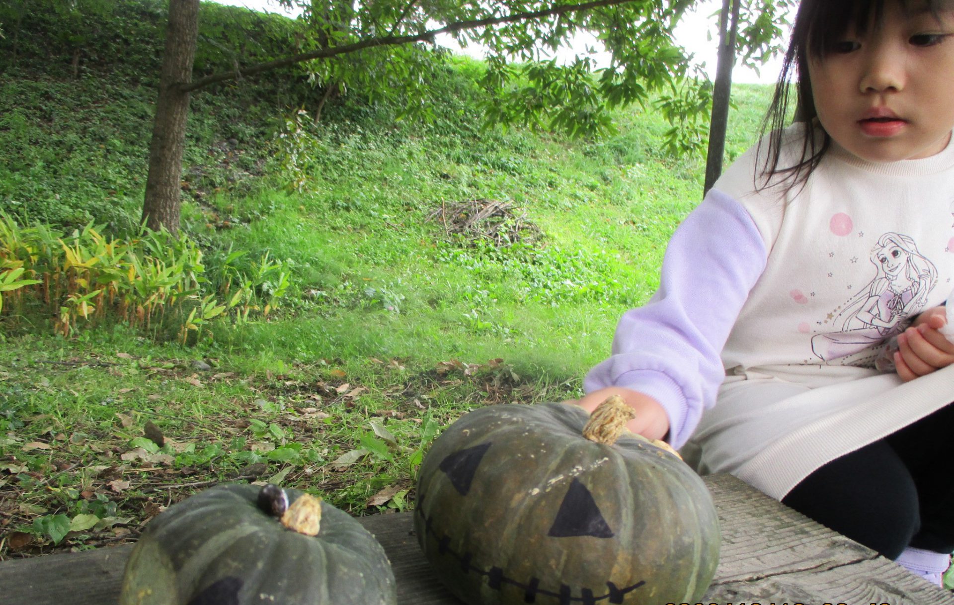 「かぼちゃに顔ある!」 「名前もあるんだぁ〜」