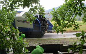 「がんばれー」 「どんどん、(稲が)なくなっていくね」