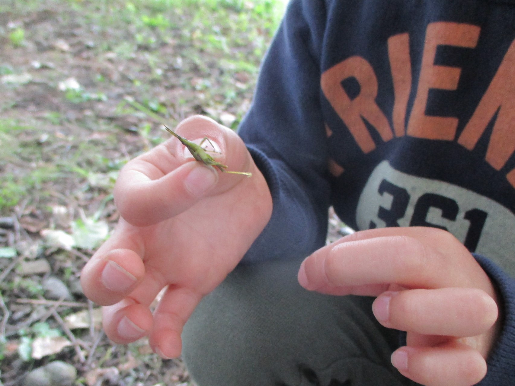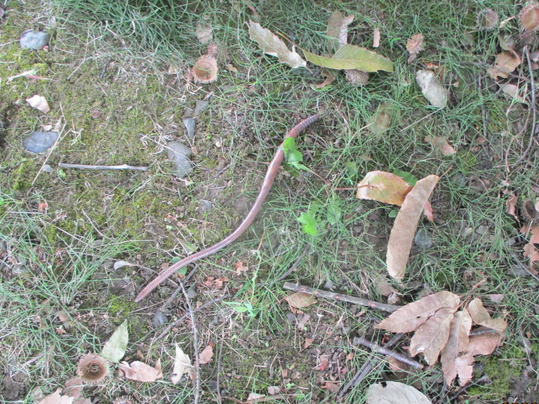 「このミミズ、ドングリを食べて大きくなったの?」 「そうかもね〜」