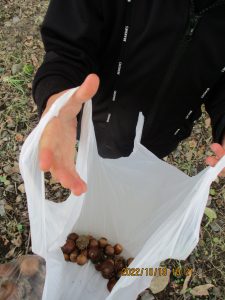 敷地内に小川が流れているので、注意しながらドングリを拾いました。