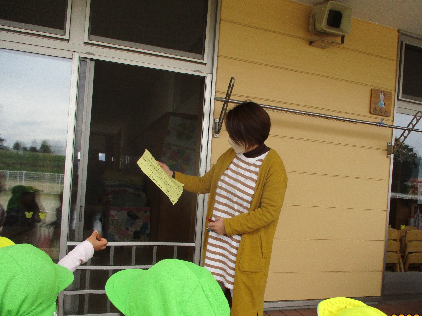 手紙から、架空の存在にも親しみをもち、園に帰ってからも「かぼすけげんきかな・・・」「また会いに行こうよ!」