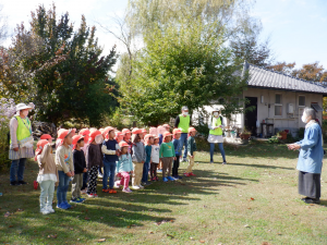 遠足の途中 ご近所の方が 今年は柿がたくさんなったから子どもたちととりに来ませんかとお声をかけてくださいました。
